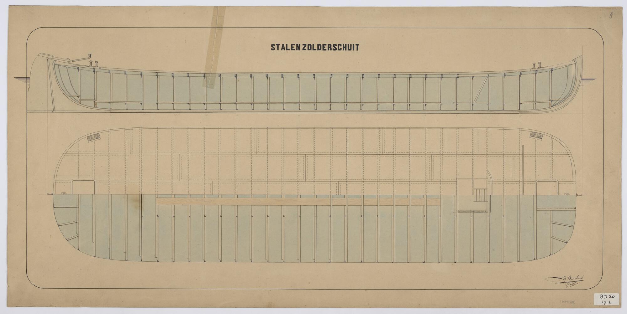 Algemeen plan van een stalen zolderschuit.
