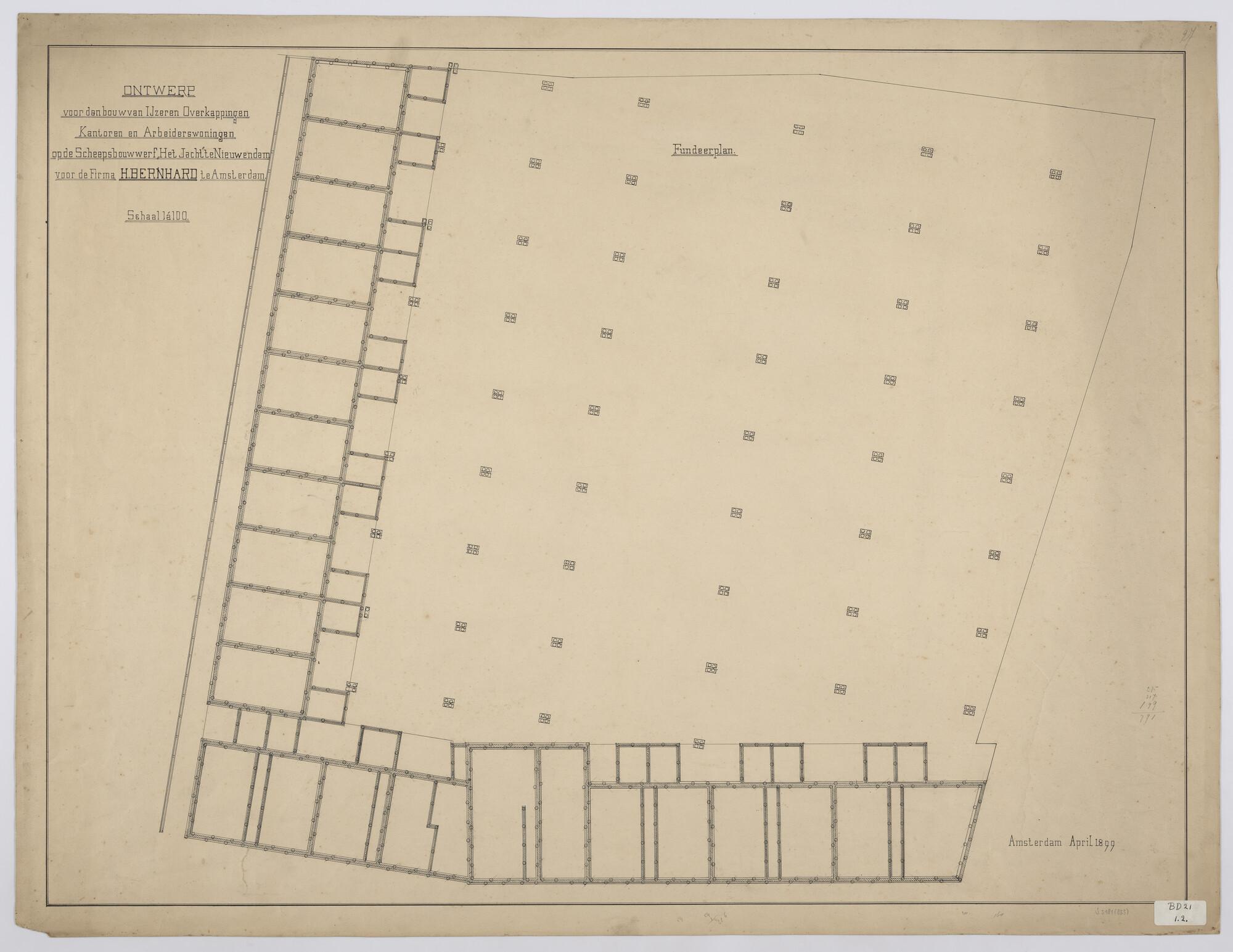 Funderingsplan voor gebouwen op de werf Het Jacht te Nieuwendam.