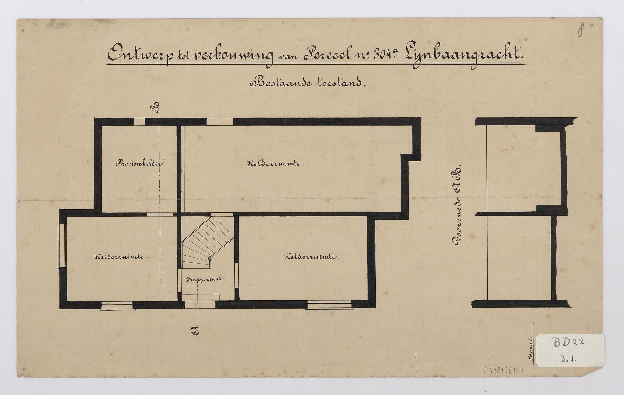 Ontwerp tot verbouwing perceel no.304a, Lijnbaansgracht, werf 't Jacht.