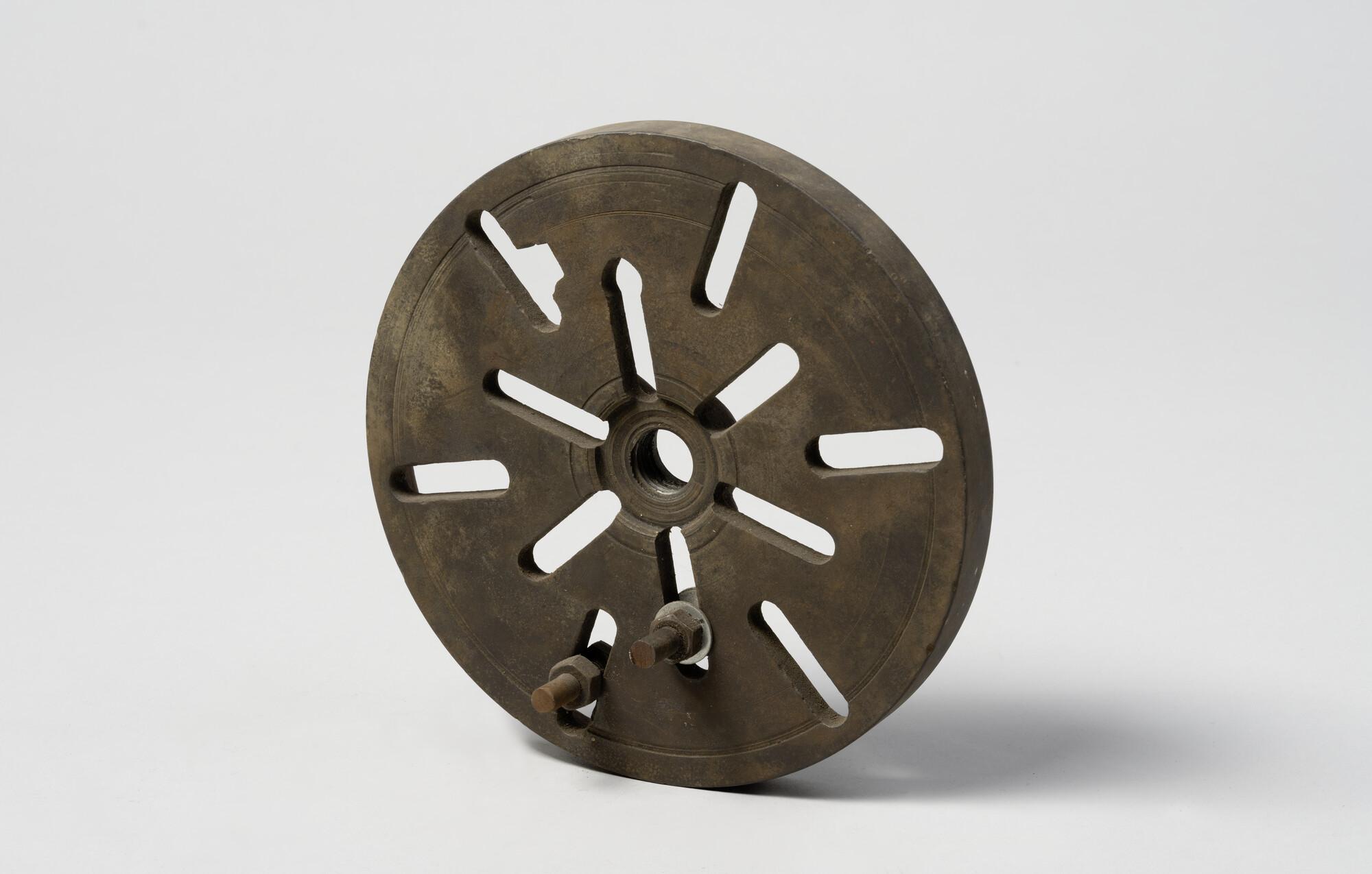 Stelplaat van een draaibank. Behorend bij draaibank S.5200(01).