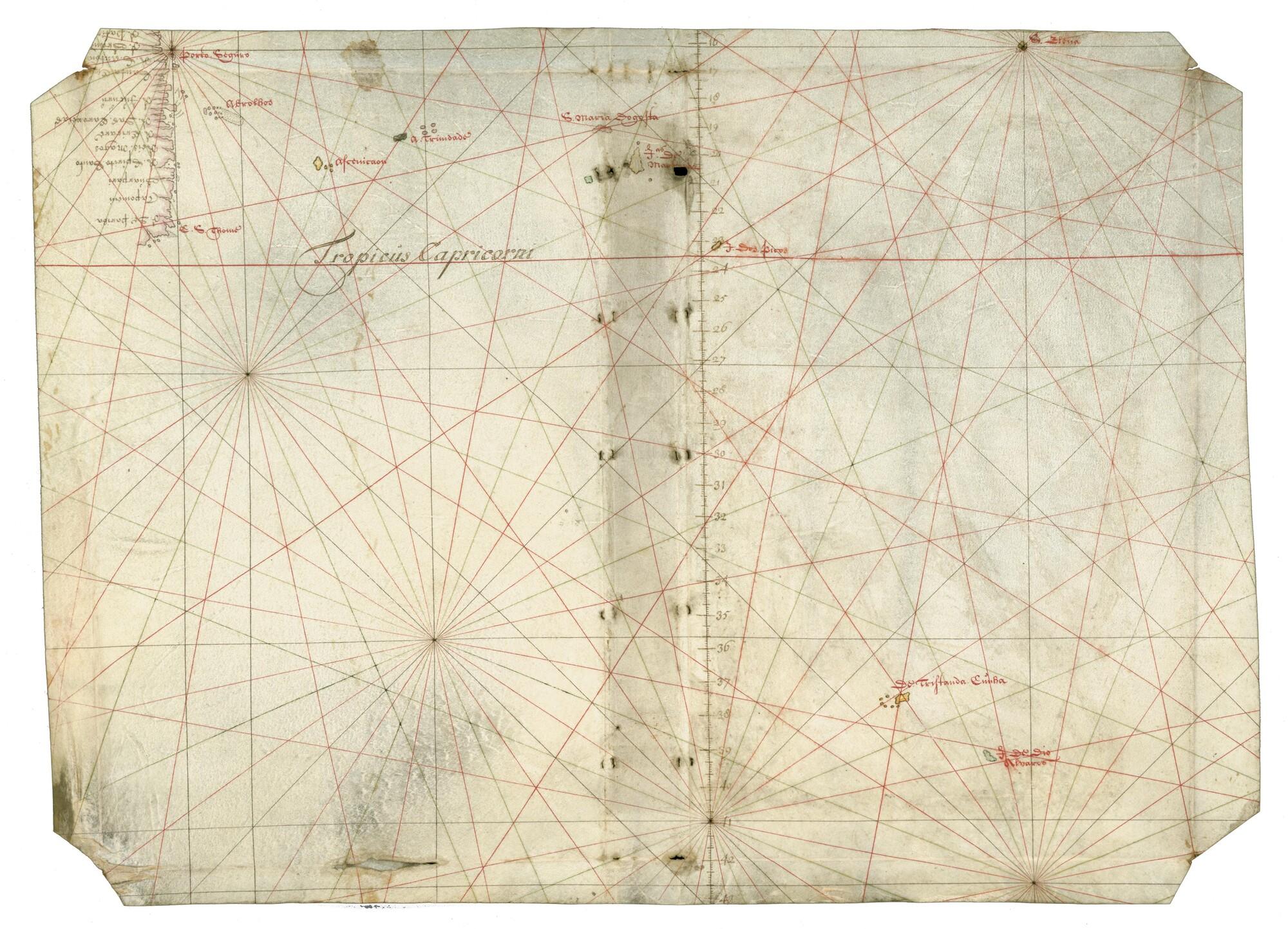Fragment van een zeekaart van de Zuid-Atlantische Oceaan, voor 1731. Deze kaart diende als omslag voor het boek Stuurmans Schoole van Simon Pietersz uit 1658 in de collectie van het Scheepvaartmuseum. De omslag is in 1978 van het boek verwijderd en apart als kaart opgenomen in de collectie (schaal 1 op 10.000.000).