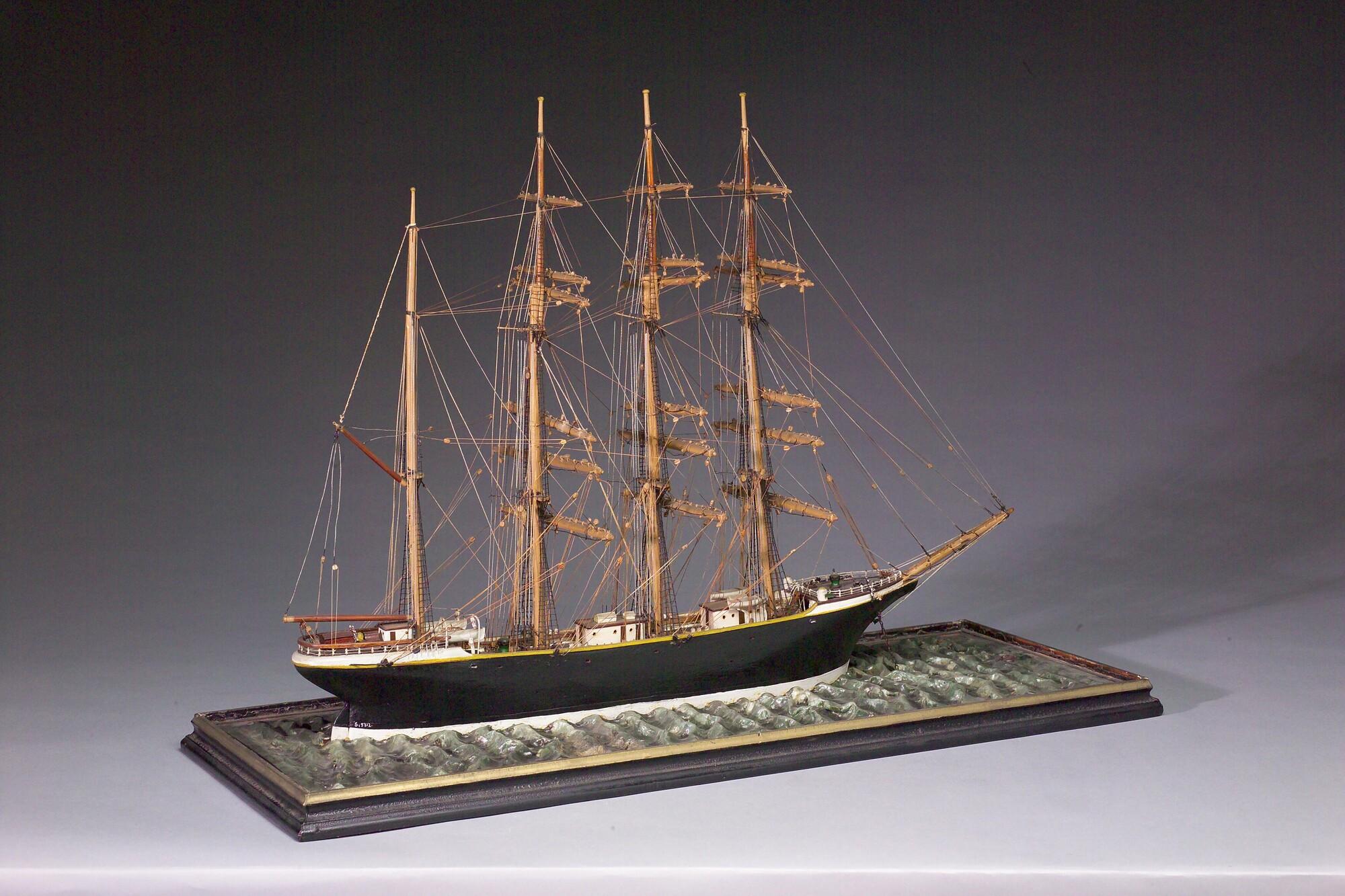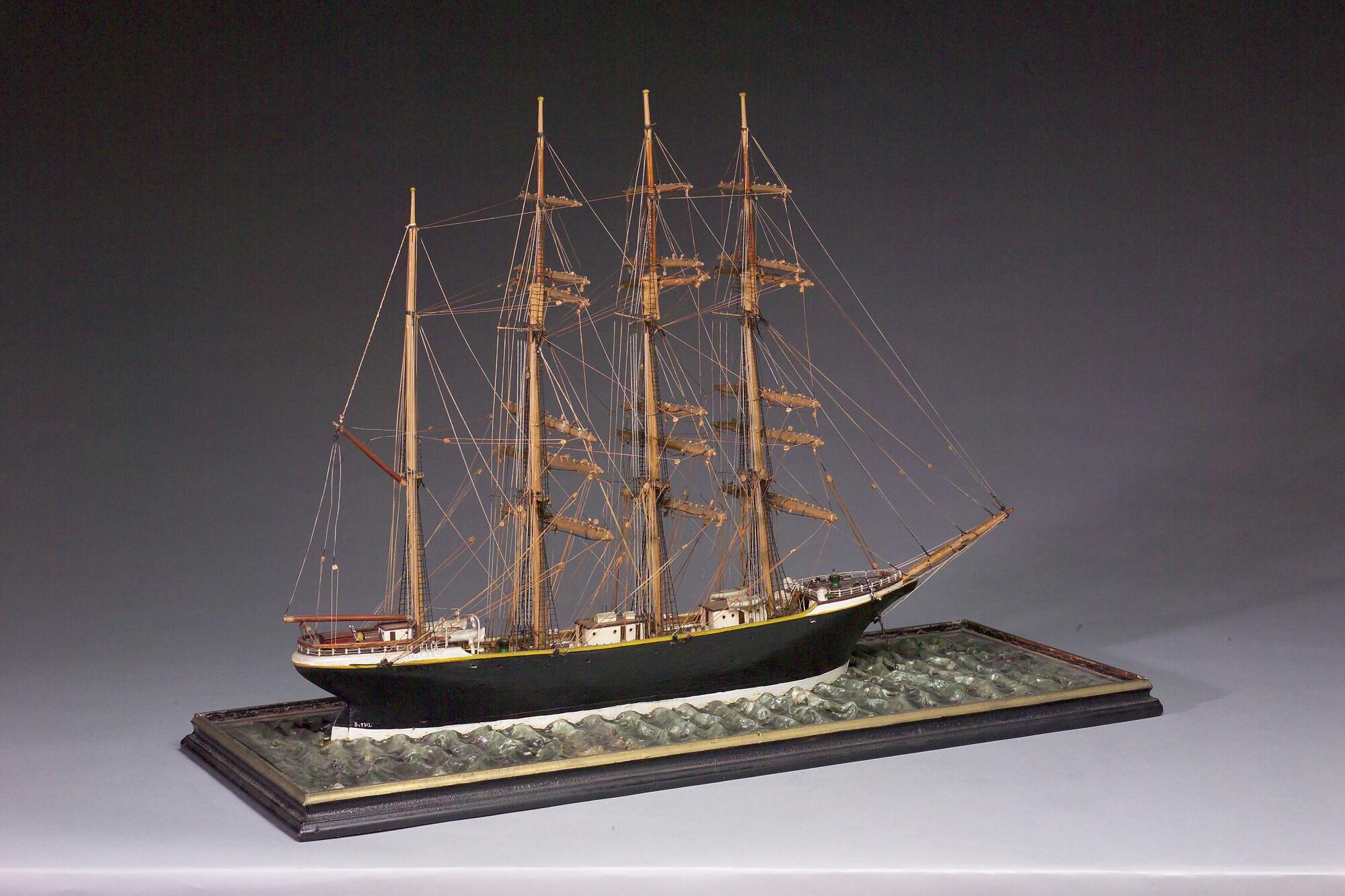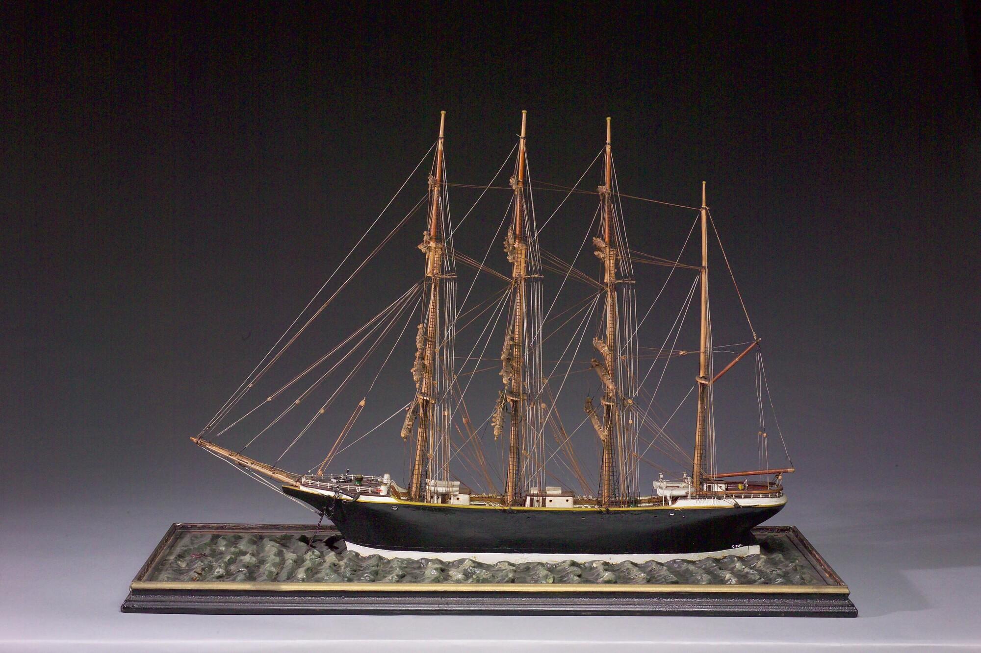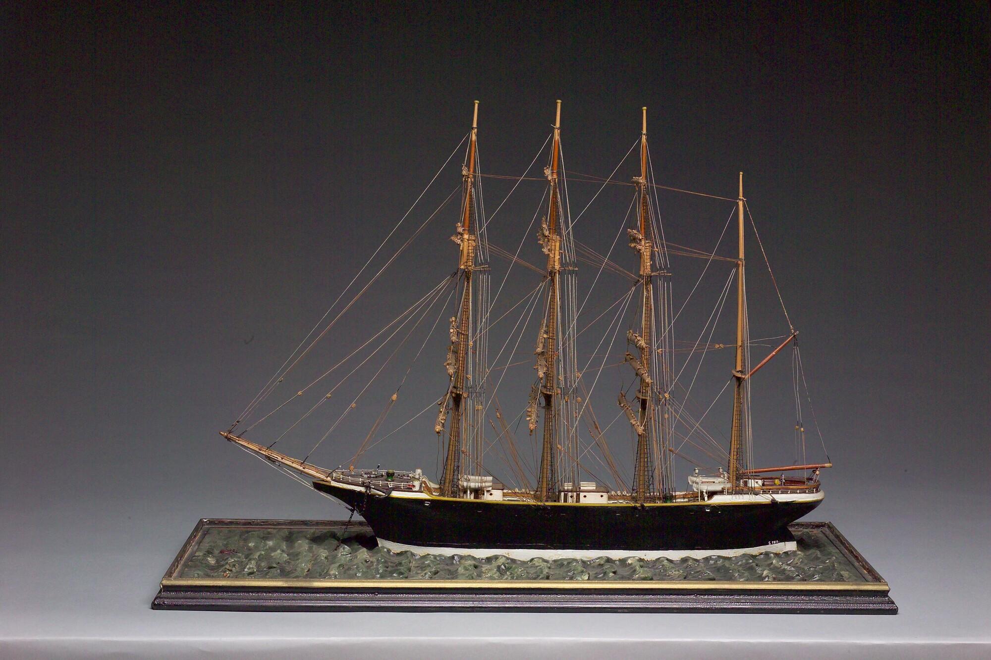 Getuigd model van een viermastbark, circa 1890.
