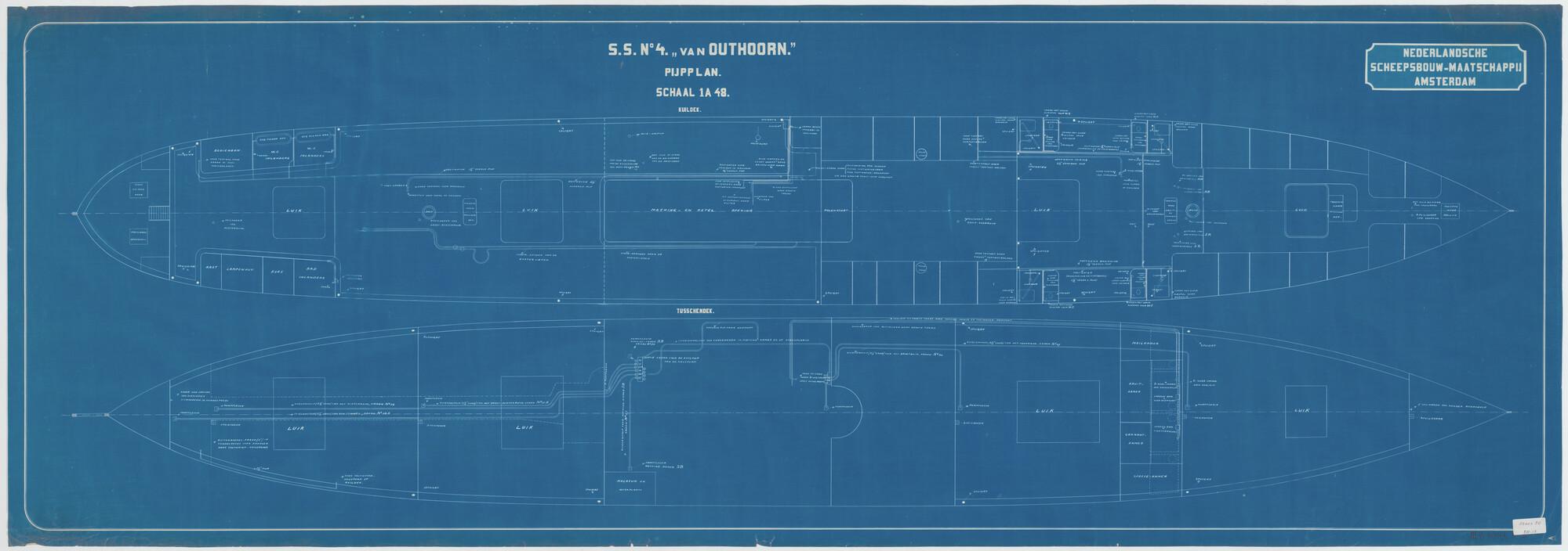 Pijpleidingen van het vracht- en passagiersschip ss. Van Outshoorn van de Koninklijke Paketvaart-Maatschappij