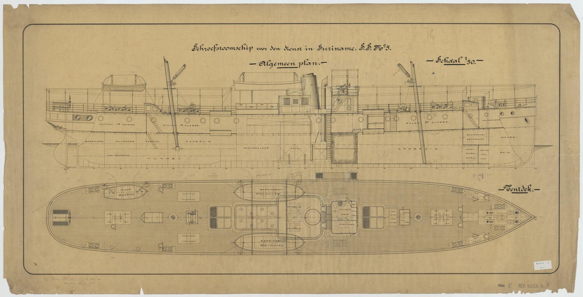 Algemeen plan van vracht- en passagiersschip ss. Paramaribo voor het Departement van Koloniën.