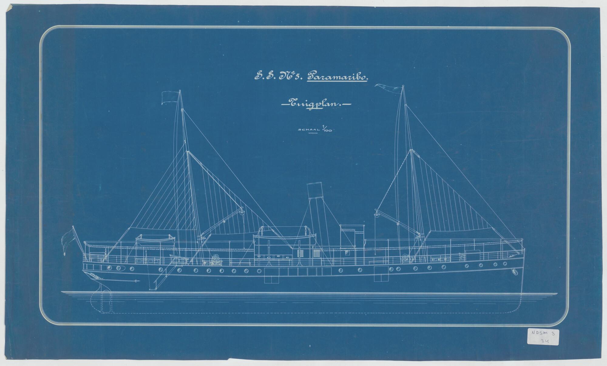 Tuigplan van vracht- en passagiersschip ss. Paramaribo voor het Departement [...]