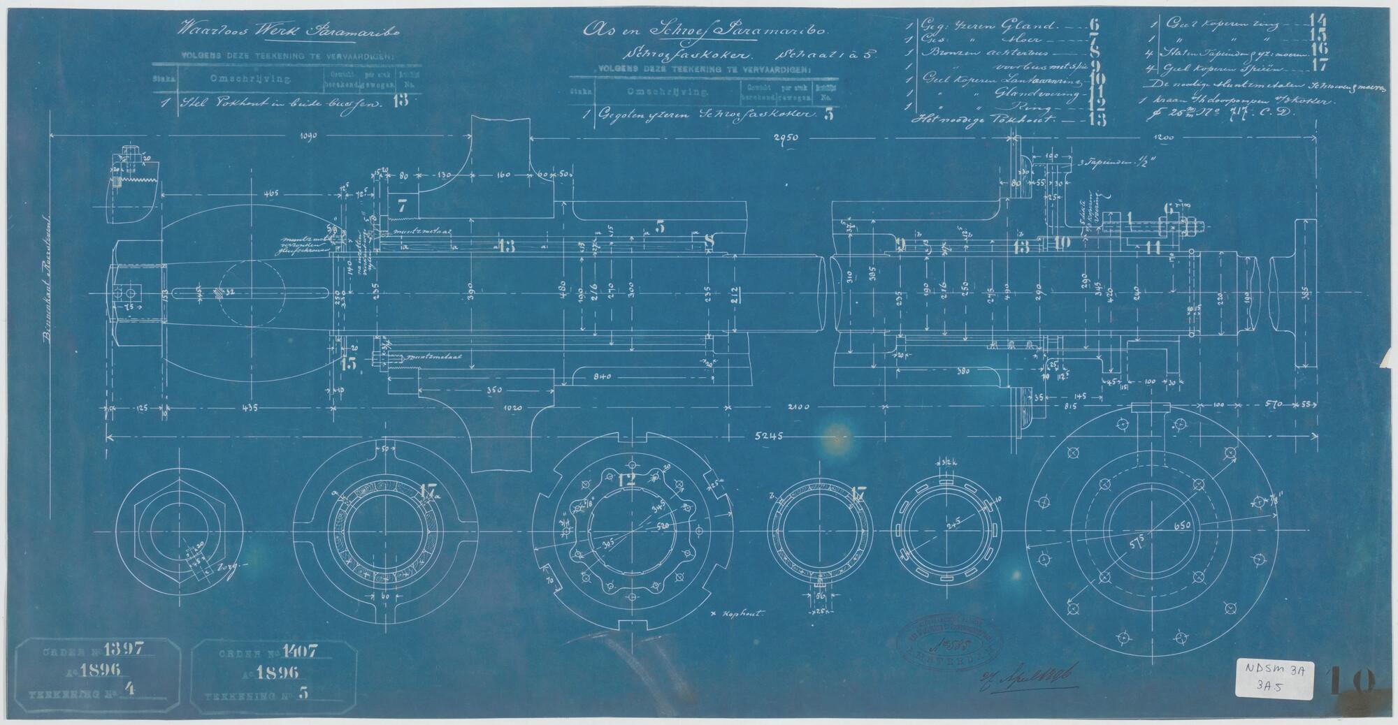 Schroefaskoker van vracht- en passagiersschip ss. Paramaribo voor het Departement van Koloniën.