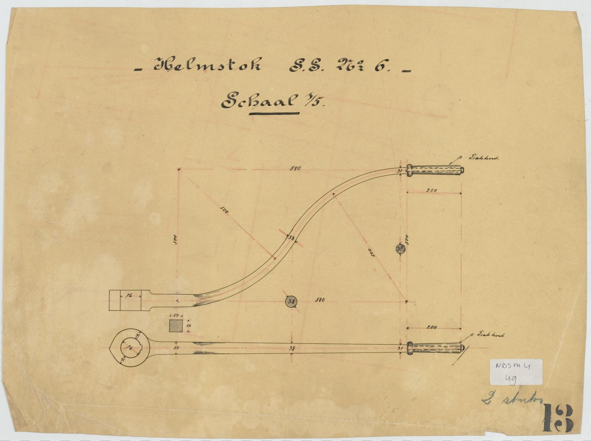 Helmstok van de stoomsleepboot "Batavia" voor het Departement van Koloniën.