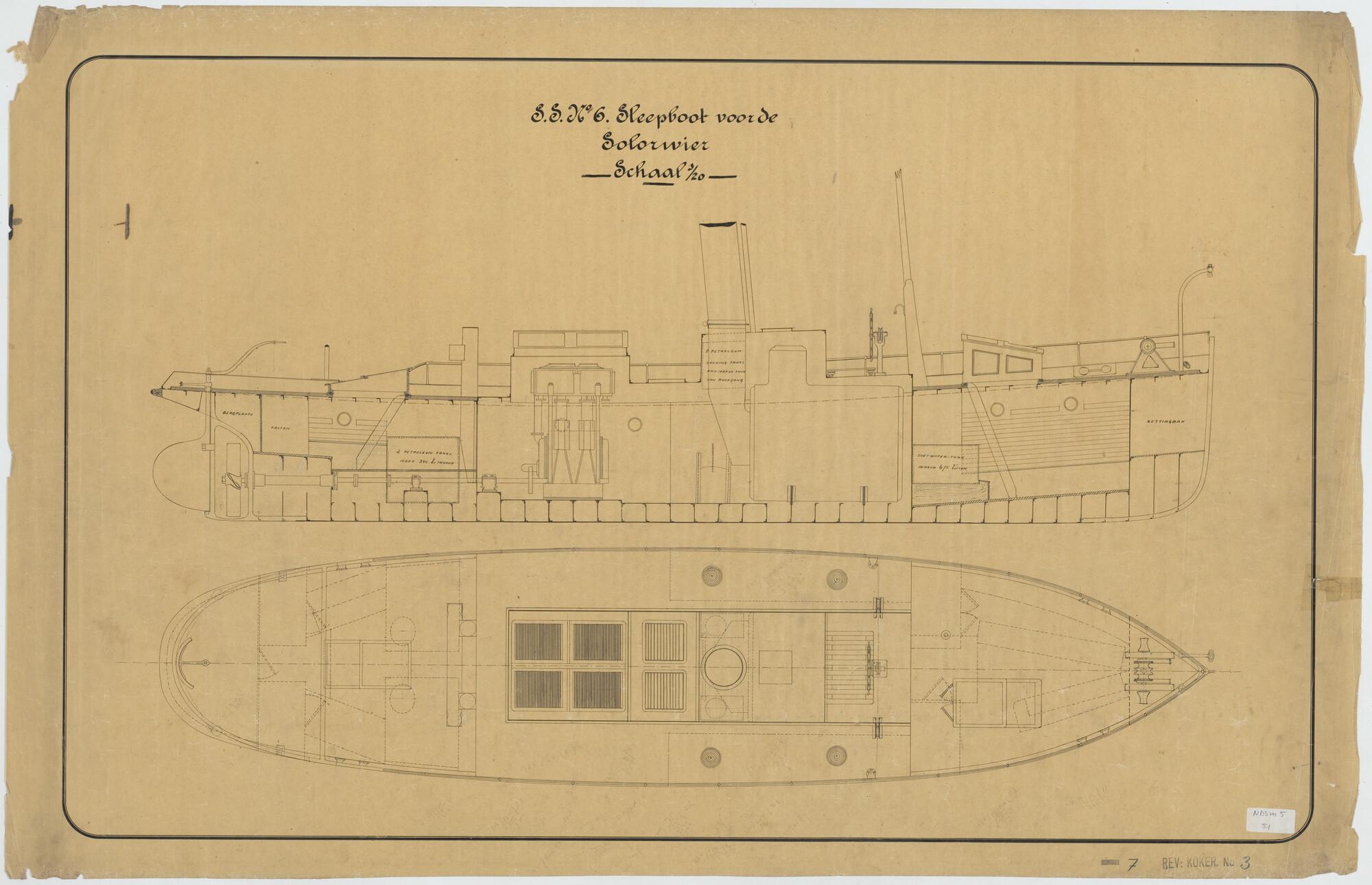 Algemeen plan van de stoomsleepboot Solorivier voor het Departement van Koloniën.