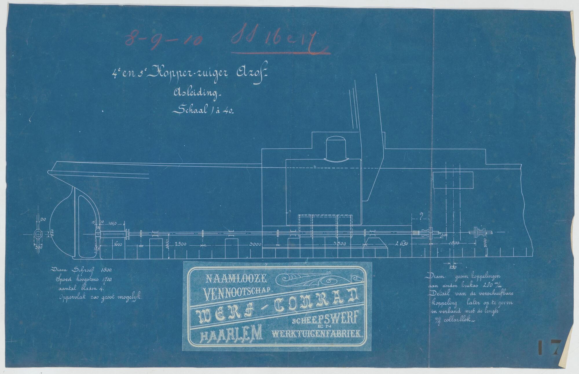 Schroefasleiding van de hoppers "Pantikopea", "Tanais", "Tanagoria", "Olivia", "Dioskuria", "Martin Garcia I", "Martin Garcia II" en "Martin Garcia III" voor Werf Conrad.