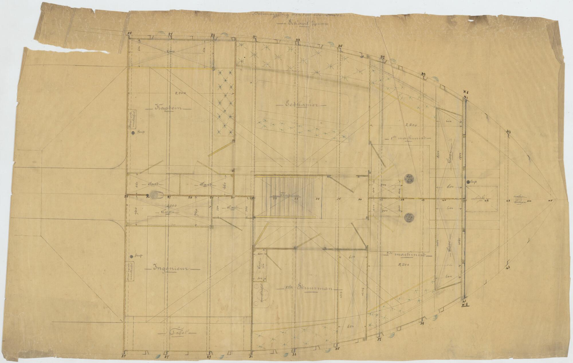 Betimmering vooronder van de hoppers "Pantikopea", "Tanais", "Tanagoria", "Olivia", "Dioskuria", "Martin Garcia I", "Martin Garcia II" en "Martin Garcia III" voor Werf Conrad.