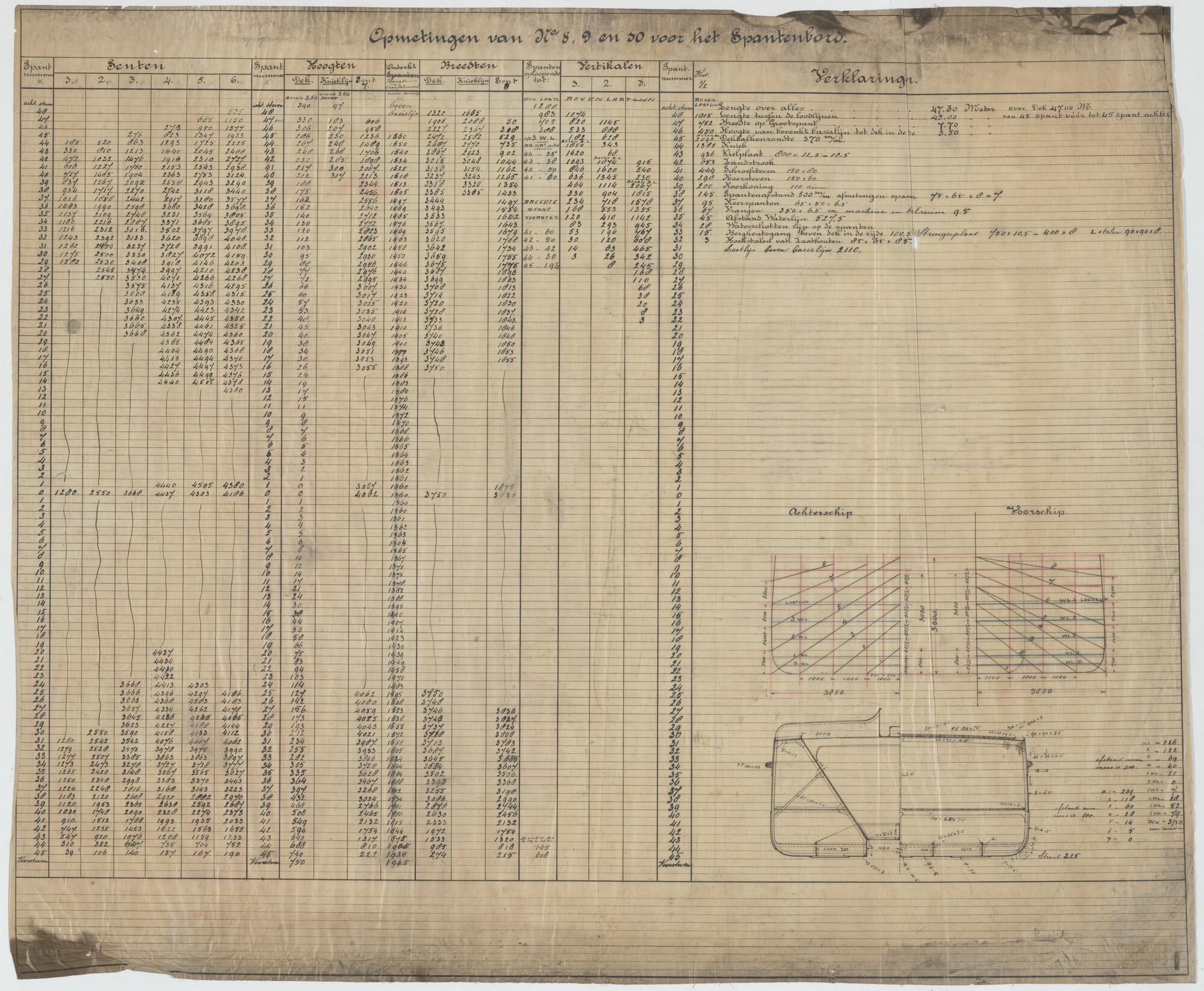 Spantafmetingen van de hoppers "Pantikopea", "Tanais", "Tanagoria", "Olivia", "Dioskuria", "Martin Garcia I", "Martin Garcia II" en "Martin Garcia III" voor Werf Conrad.