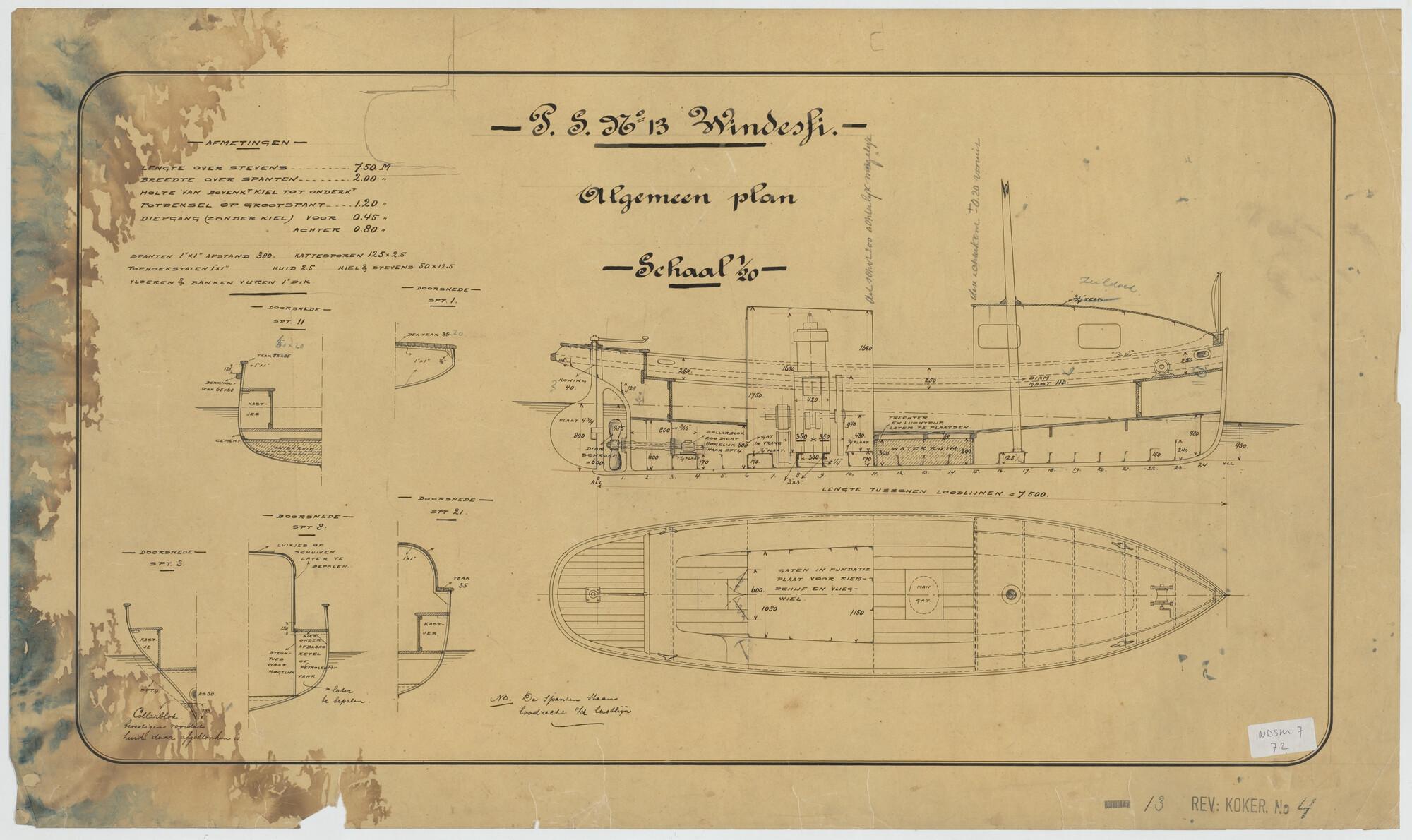 Algemeen plan van het motorbootje 'Windettie'