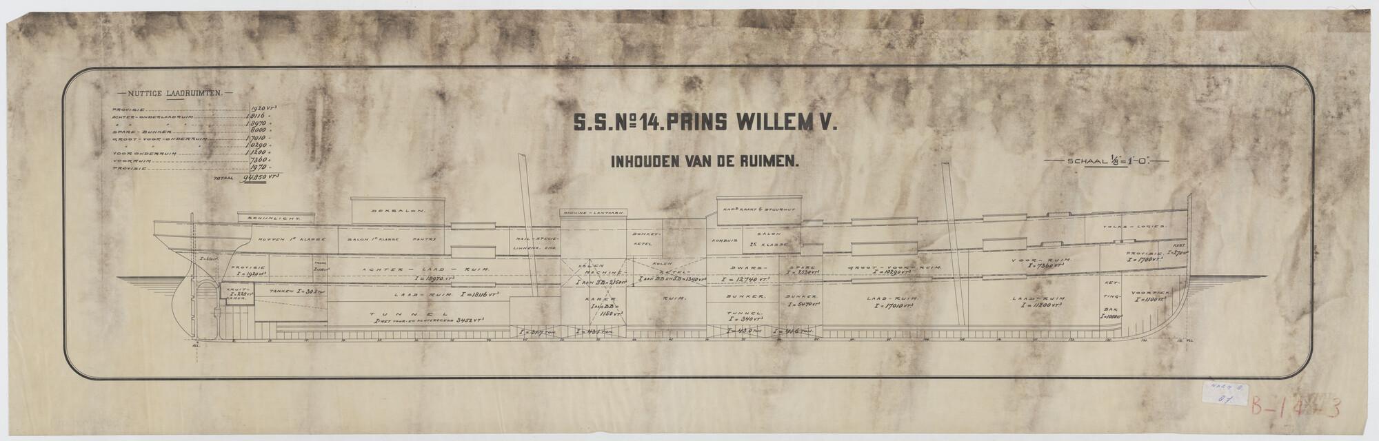Ruiminhouden van het passagiersschip ss. Prins Willem V voor de KWIM