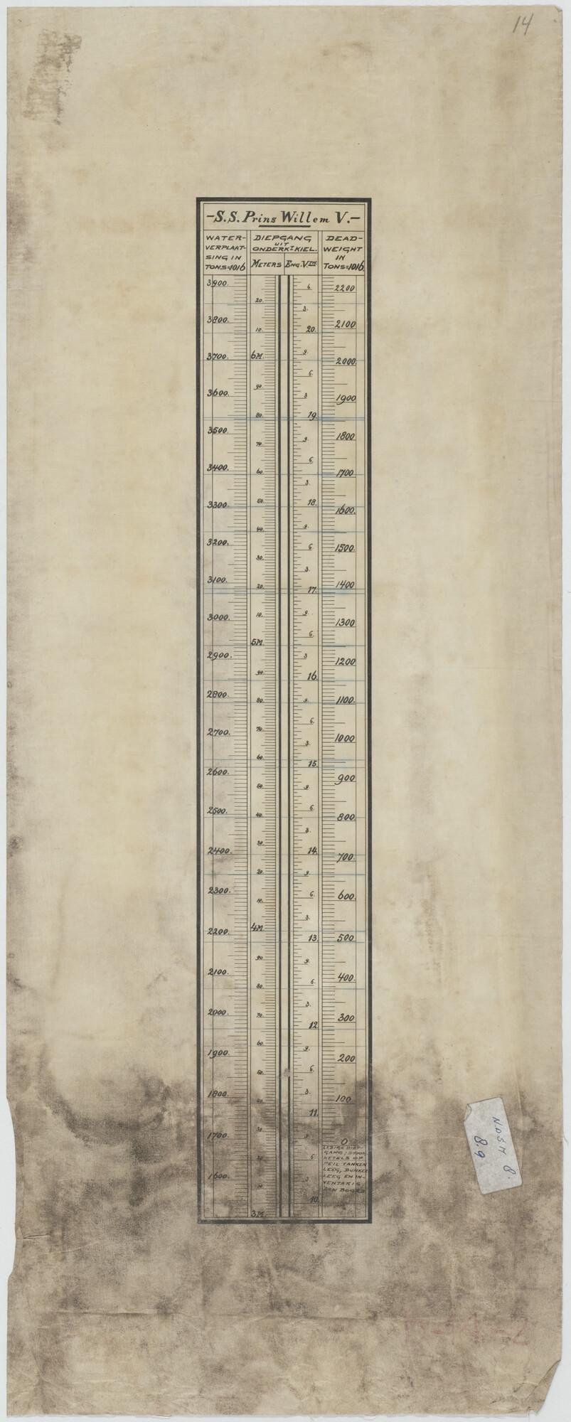 Schaal van waterverplaatsing van het passagiersschip ss. Prins Willem V voor de KWIM.