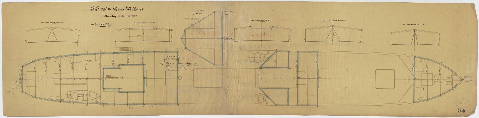 Aanleg van de zonnetent van het passagiersschip ss. Prins Willem V voor de KWIM