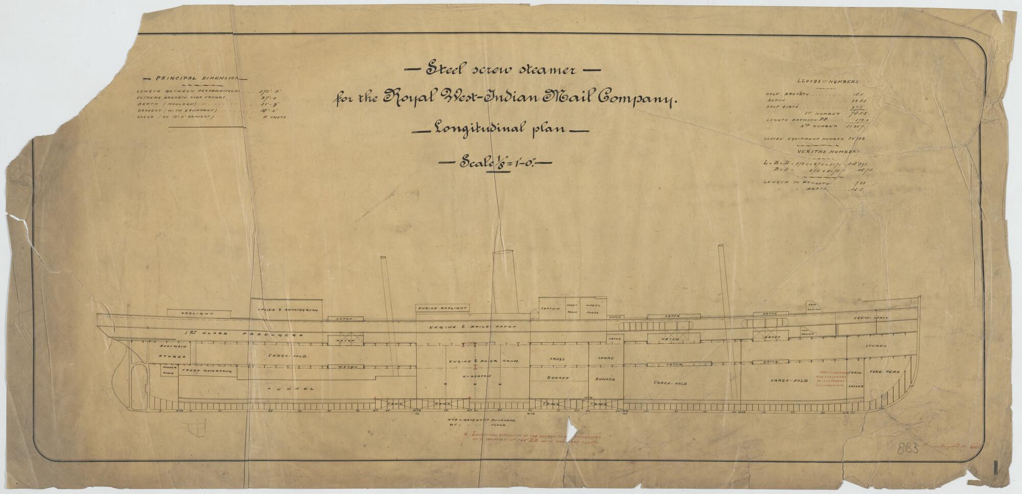 Langsdoorsnede van het passagiersschip ss. Prins Willem V voor de KWIM.