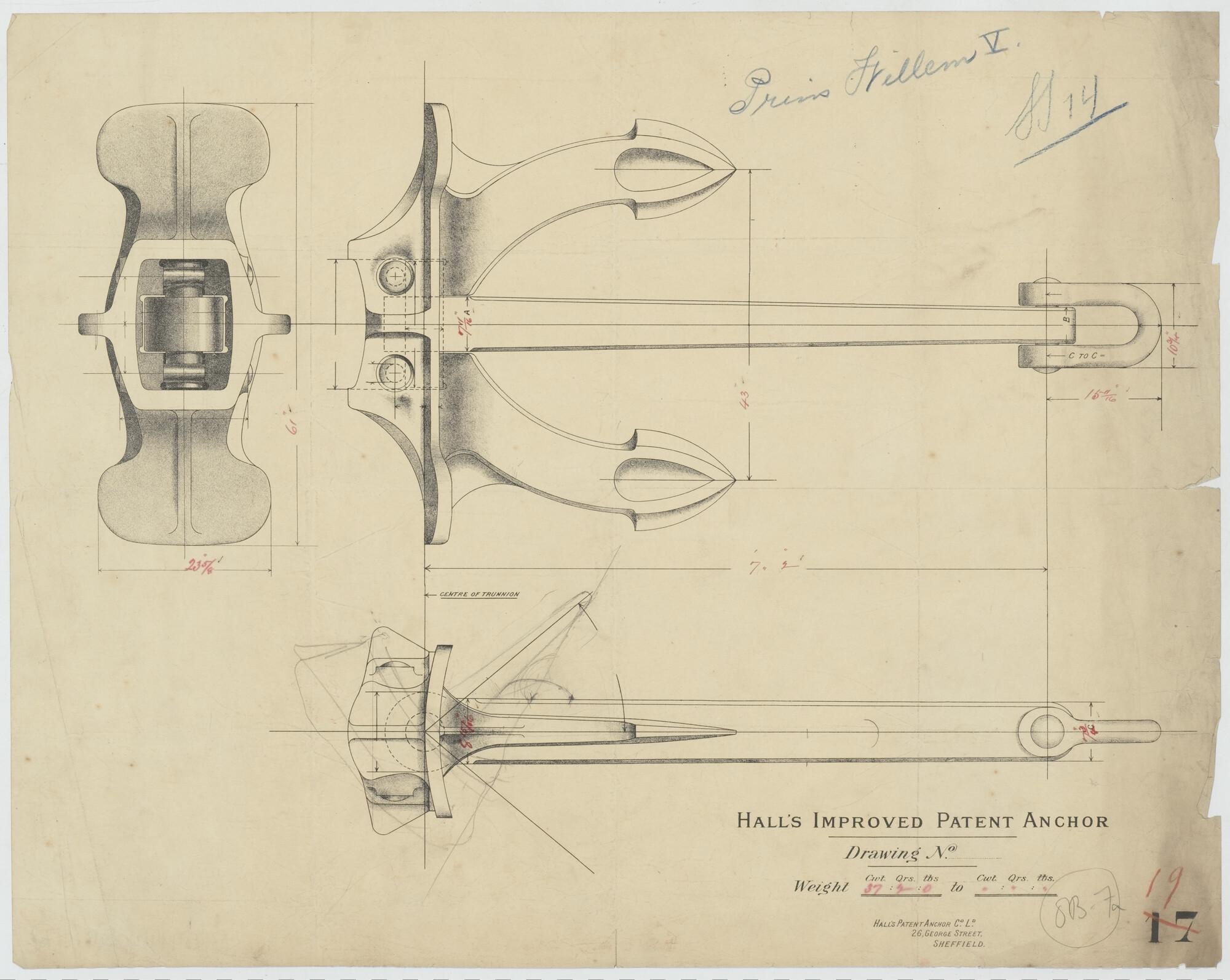 Hall's improved patent anchor van het passagiersschip ss. Prins Willem V voor de KWIM.