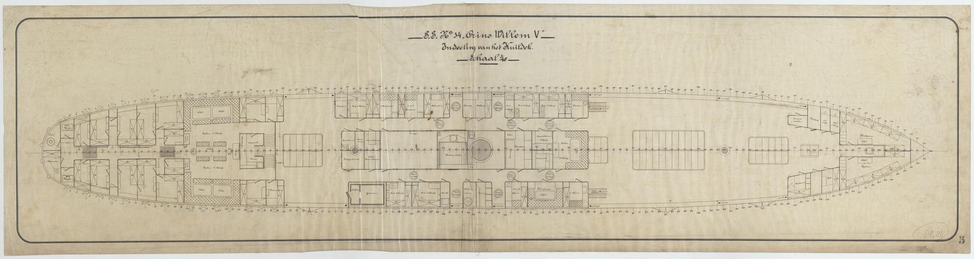 Indeling van het kuildek van het passagiersschip ss. Prins Willem V voor de KWIM