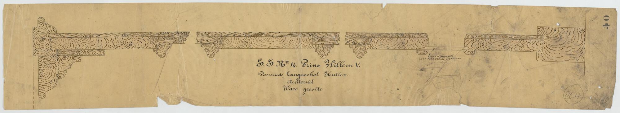 Doorsnede langsschot hutten, achteruit, van het passagiersschip ss. Prins Willem voor de KWIM