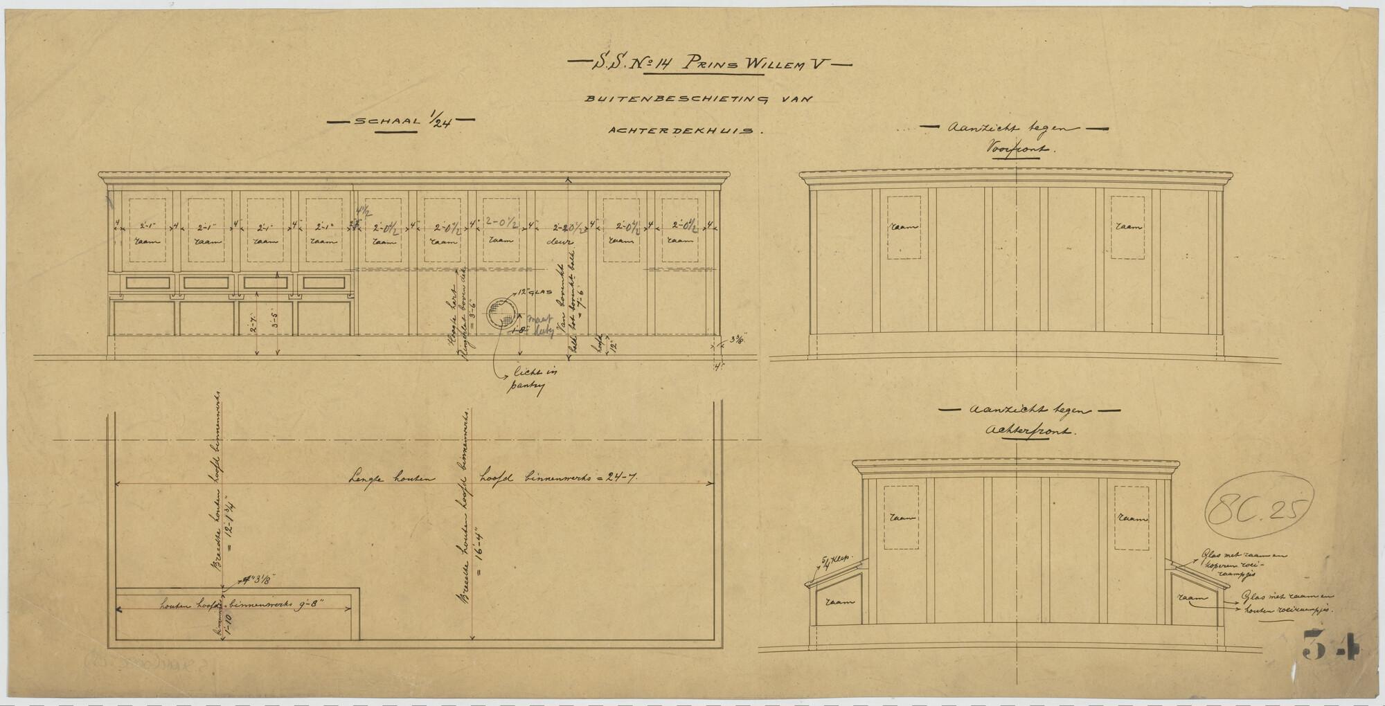 Buitenbeschieting van achterdekhuis van het passagiersschip ss. Prins Willem V voor de KWIM.
