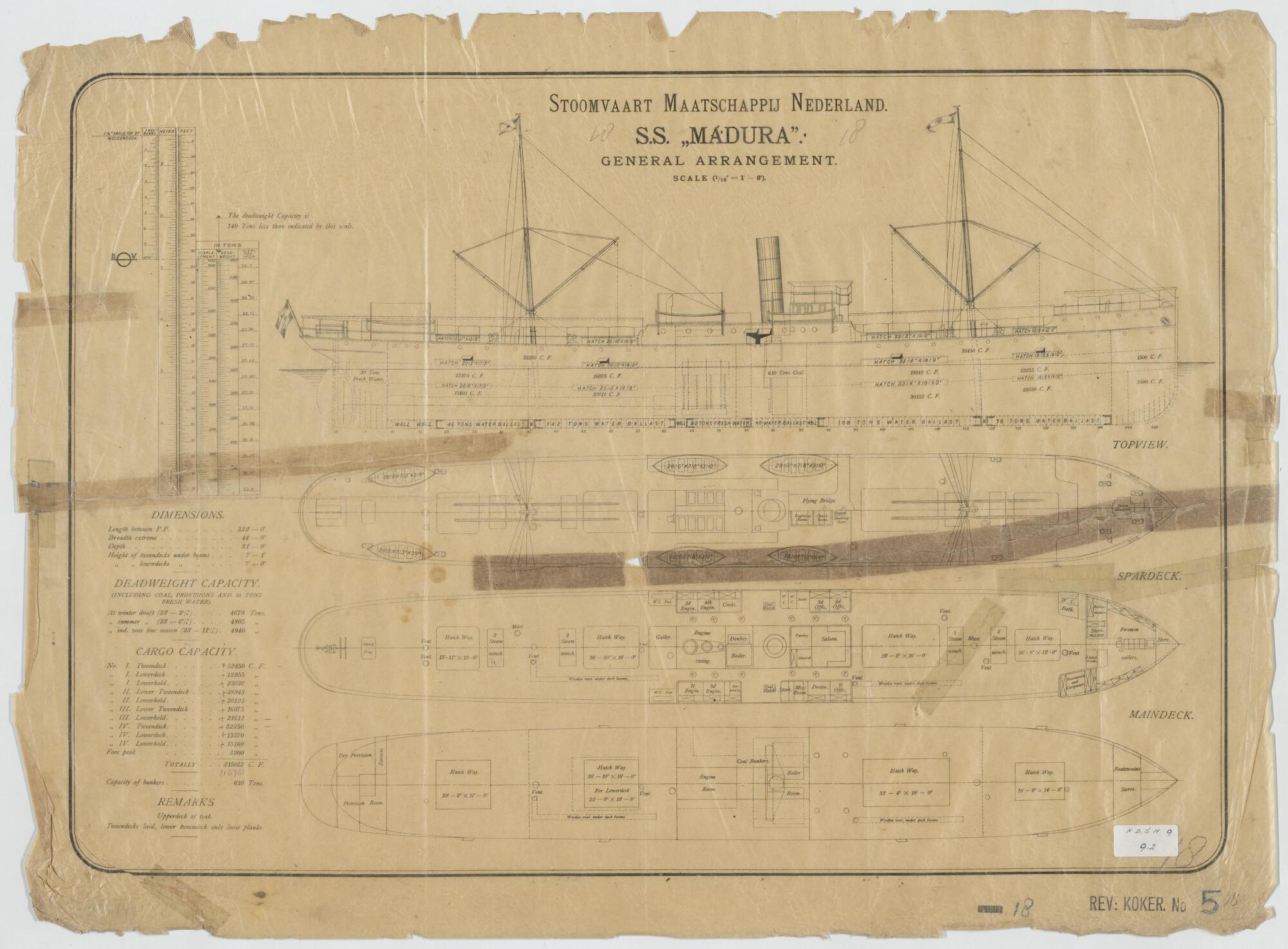 Algemeen plan van het vrachtschip ss. Madura voor de SMN