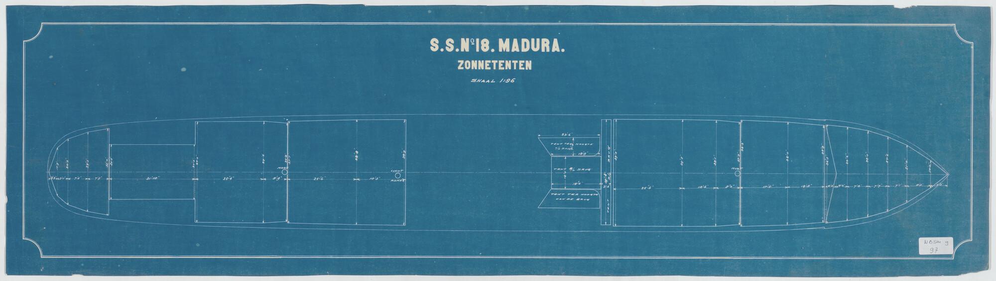 Tenten van het vrachtschip ss. Madura voor de Stoomvaart-Maatschappij Nederland (SMN).