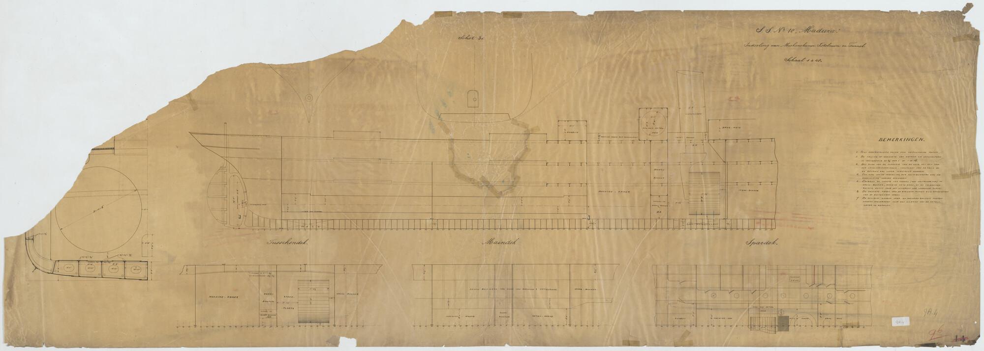 Indeling van machinekamer, ketelruim, en tunnel van het vrachtschip ss. Madura voor de SMN