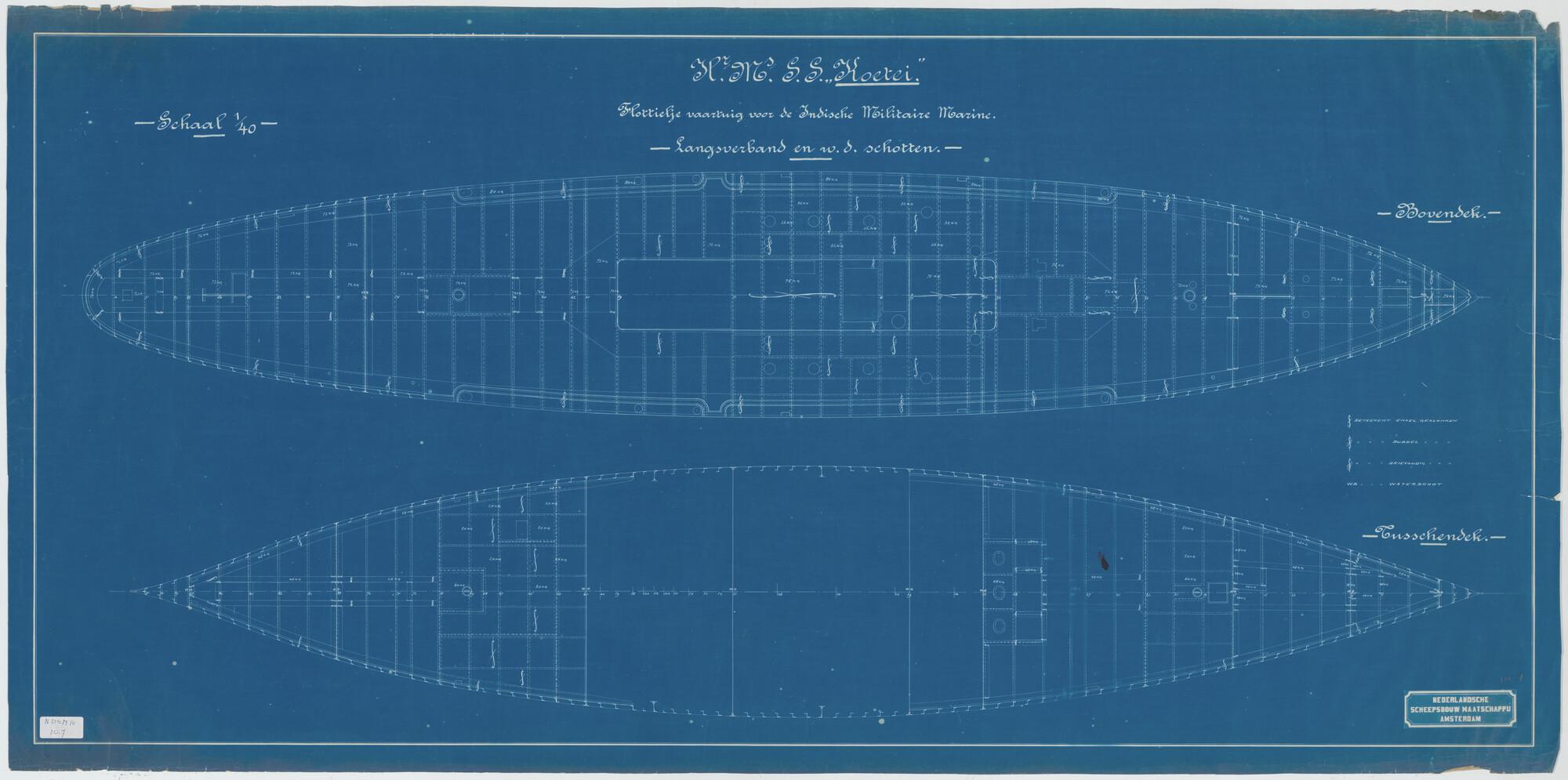 Langsverbanden, waterdichte schotten van het flottieljevaartuig Hr.Ms. "Koetei" voor het Departement van Marine.