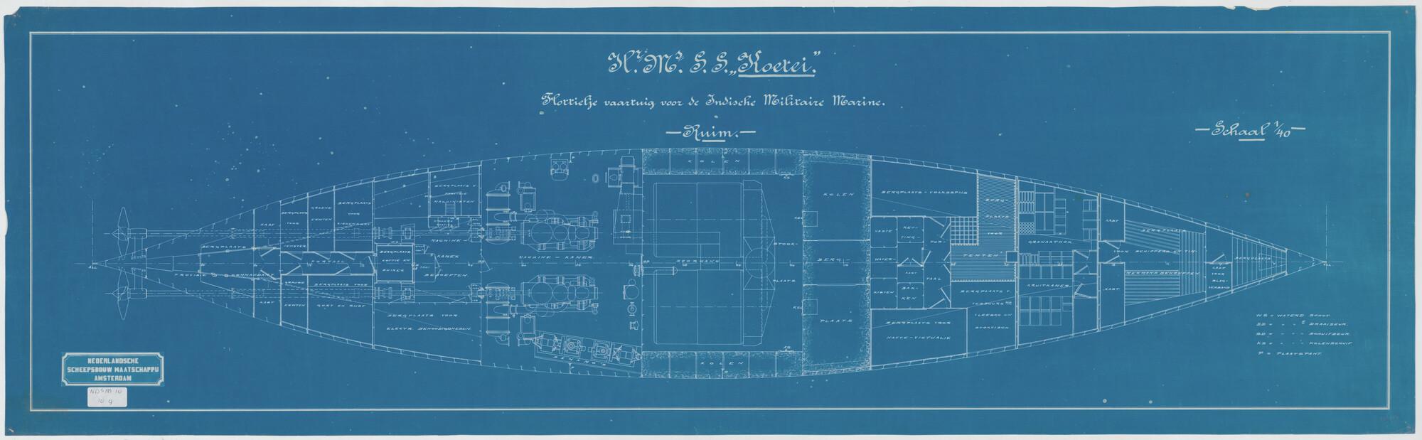 Ruim van het flottieljevaartuig Hr.Ms. Koetei voor het Departement van Marine.