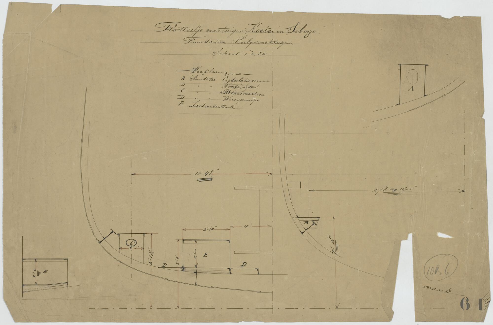 Fundatien hulpwerktuigen van het flottieljevaartuig Hr.Ms. Koetei voor het Departement van Marine.