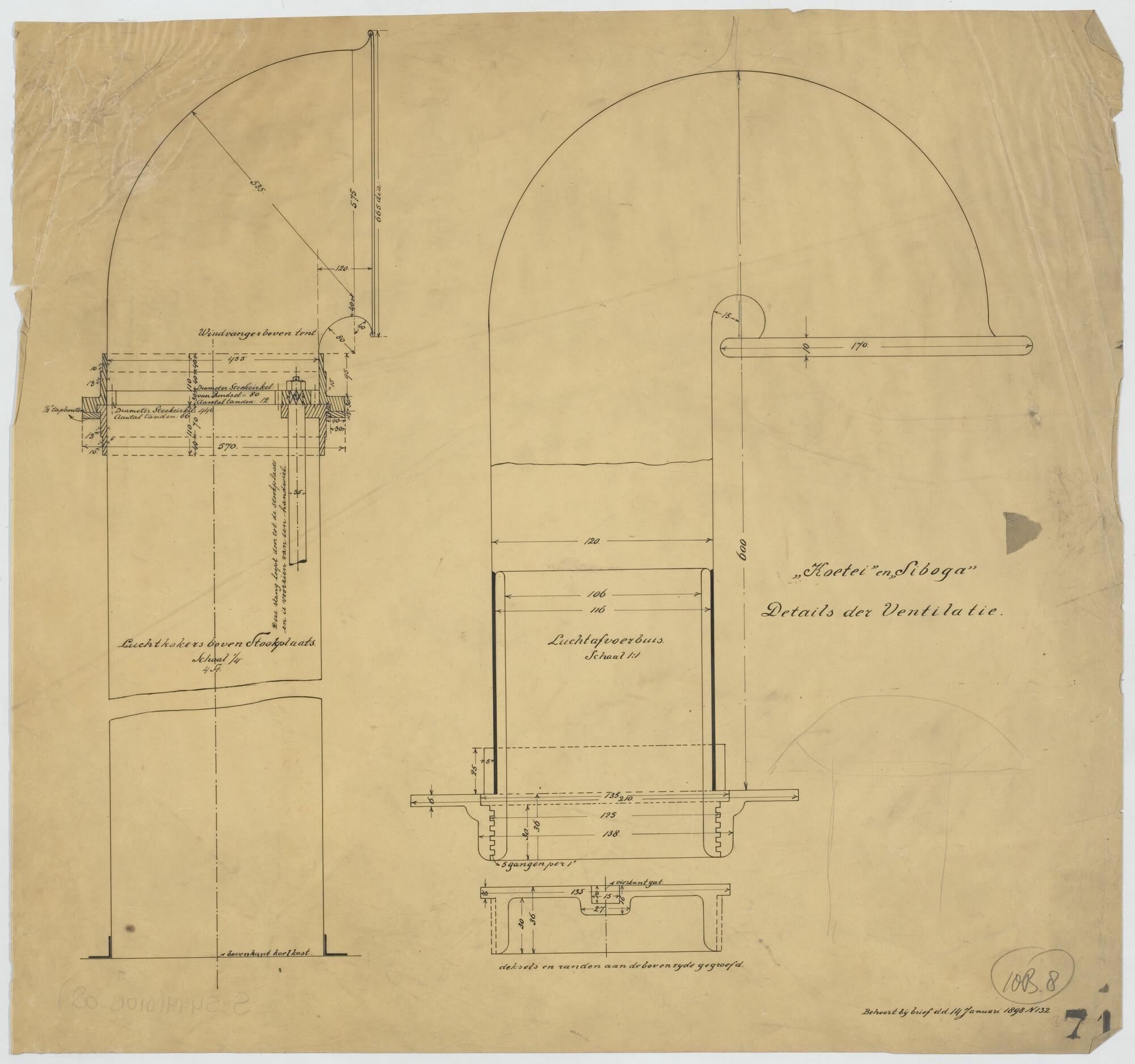 Details der ventilatie van het flottieljevaartuig Hr.Ms. Koetei voor het Departement van Marine.
