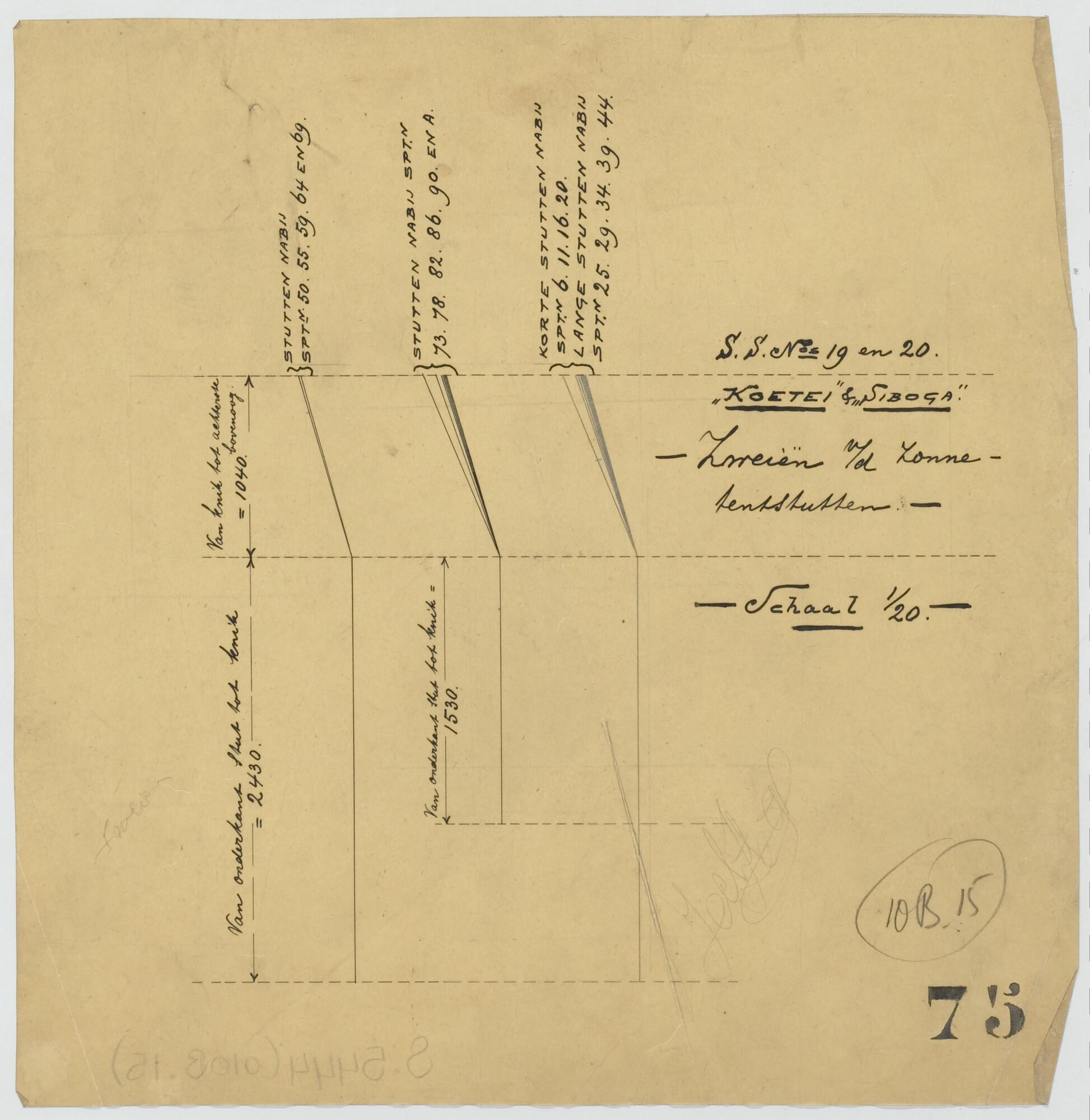 Zweien van de zonnetentstokken van het flottieljevaartuig Hr.Ms. Koetei voor het Departement van Marine.