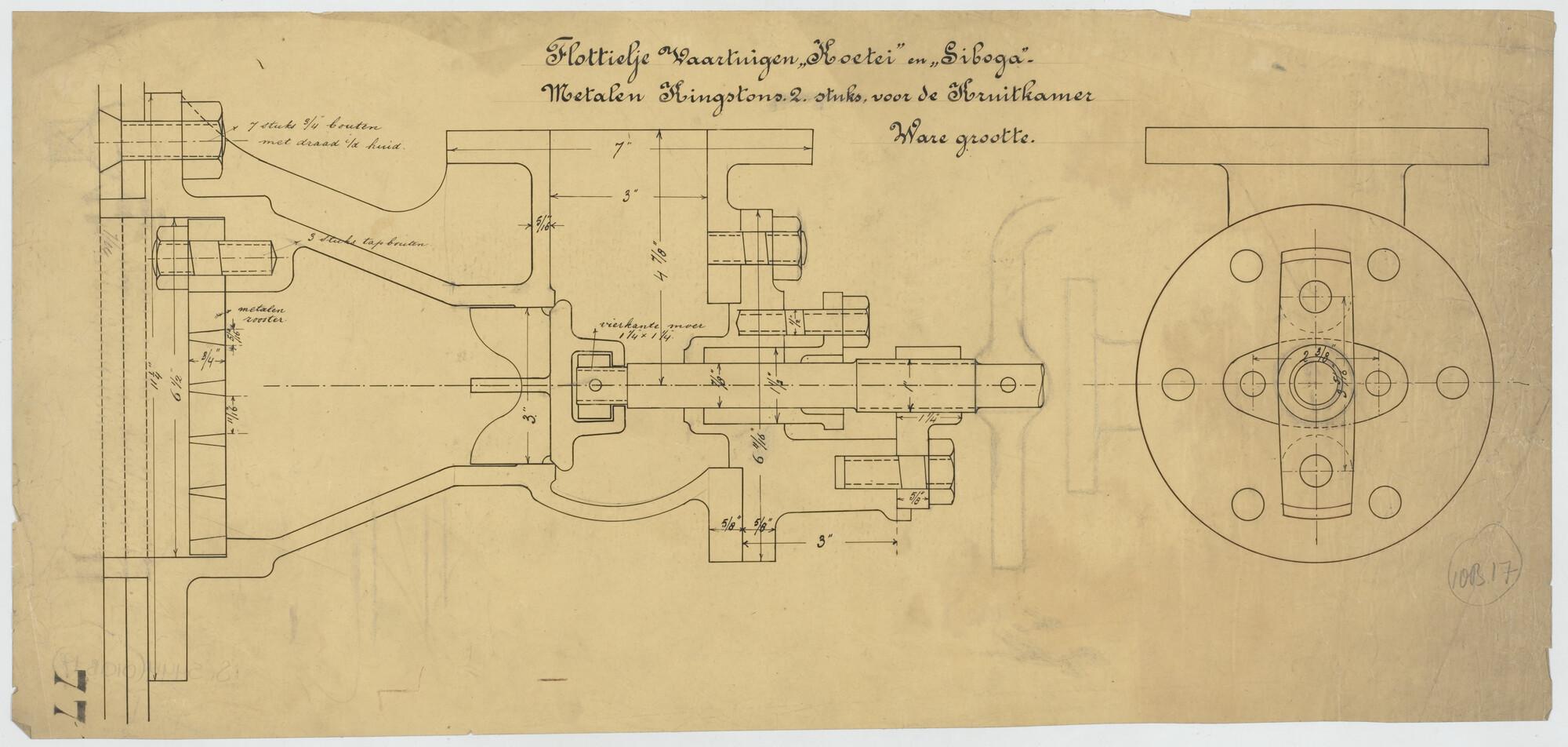Metalen kingstons, 2 stuks, voor de kruitkamer van het flottieljevaartuig Hr.Ms. Koetei voor het Departement van Marine.
