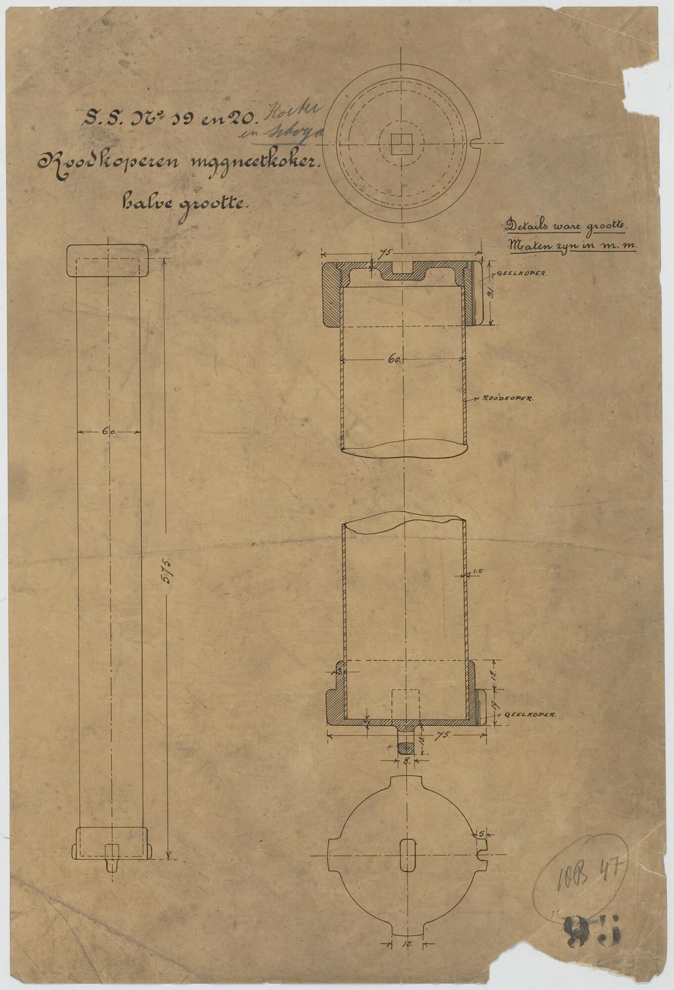 Roodkoperen magneetkoker van het flottieljevaartuig Hr.Ms. Koetei voor het Departement van Marine.