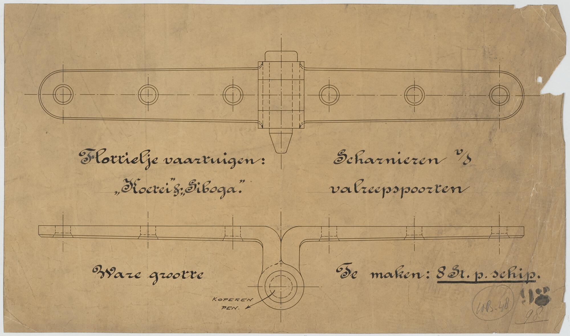 Scharnieren van de valreepspoorten van het flottieljevaartuig Hr.Ms. Koetei voor het Departement van Marine.