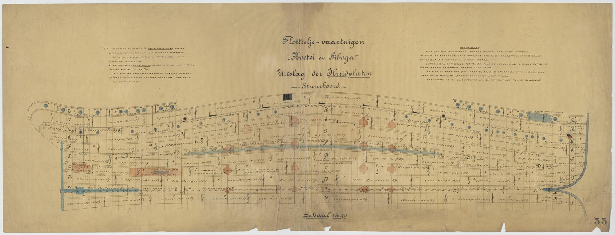 Uitslag der huidplaten stuurboord van het flottieljevaartuig Hr.Ms. Koetei voor het Departement van Marine.