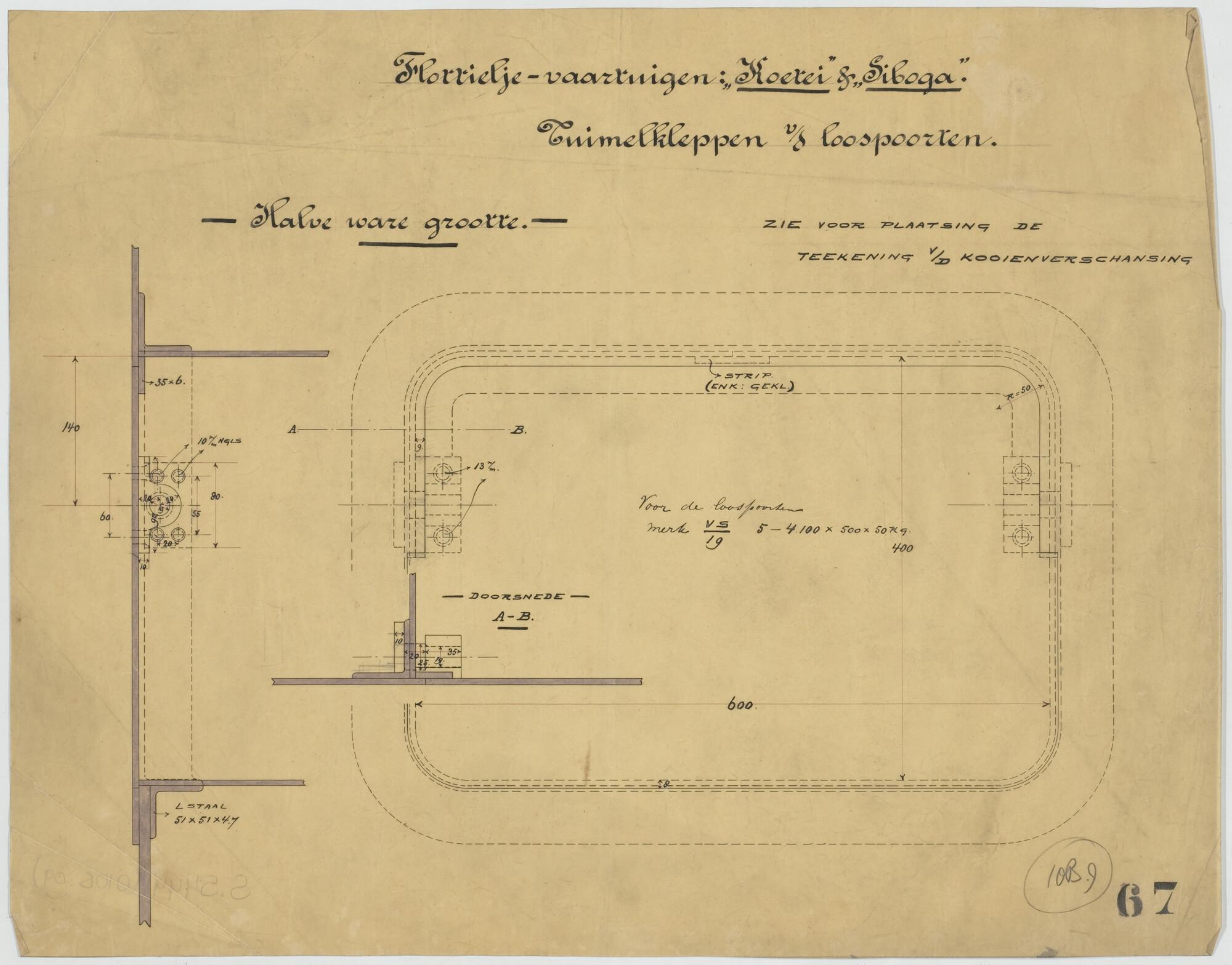 Pilaster van het flottieljevaartuig Hr.Ms. Koetei voor het Departement van Marine.