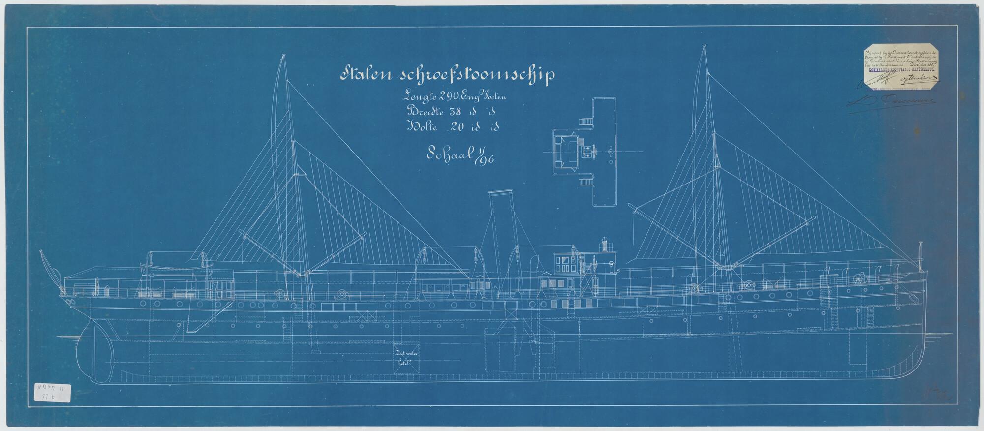 Zijaanzicht van het vracht- en passagiersschip ss. Van Imhoff van de Koninklijke Paketvaart-Maatschappij.