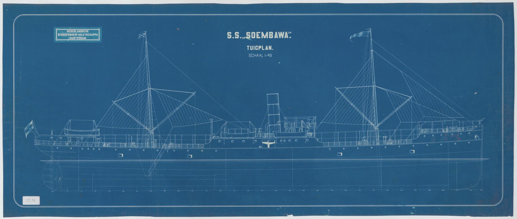 Tuigplan van het vrachtschip ss. Soembawa van de SMN