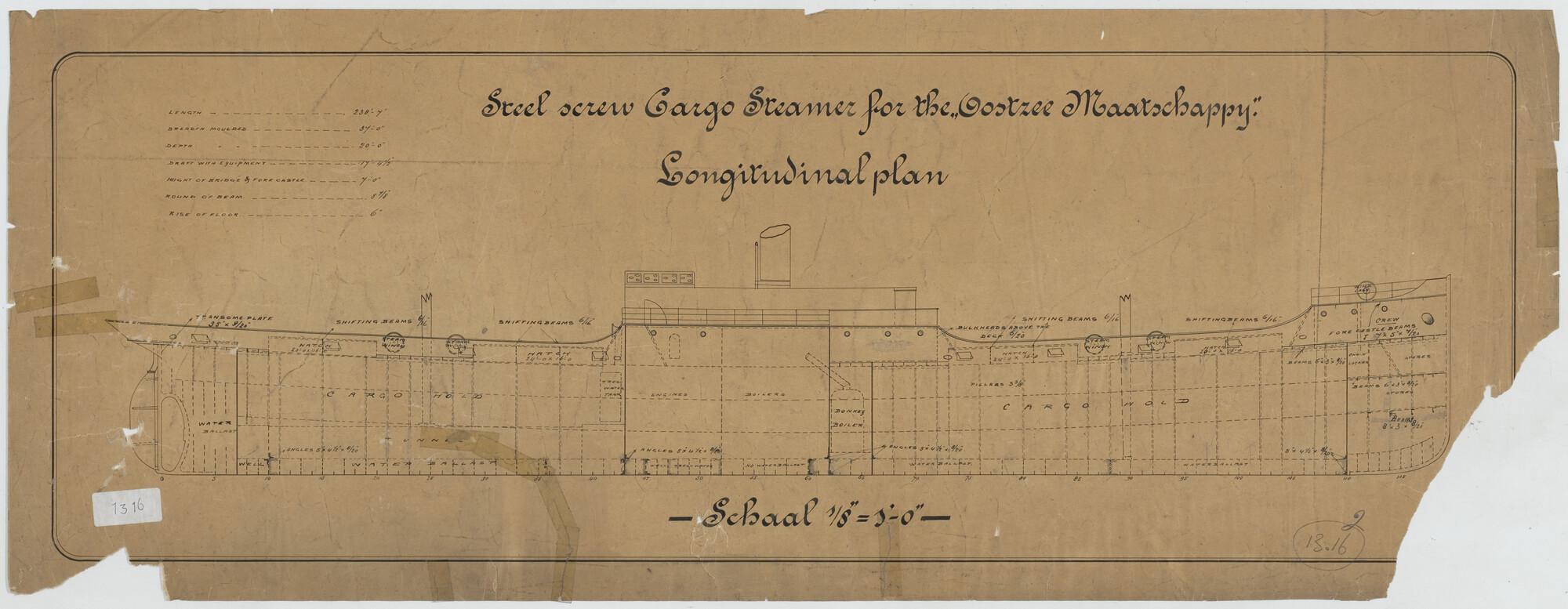 Langsdoorsnede van het vrachtschip ss. Heelsum van de Stoomvaart [...]