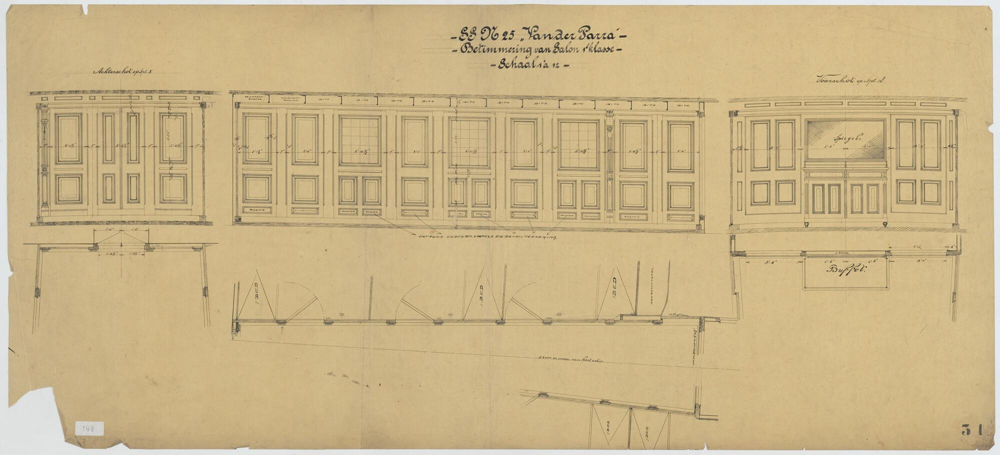 Betimmering salon eerste klasse van het vracht- en passagiersschip Van der Parra van de Koninklijke Paketvaart-Maatschappij