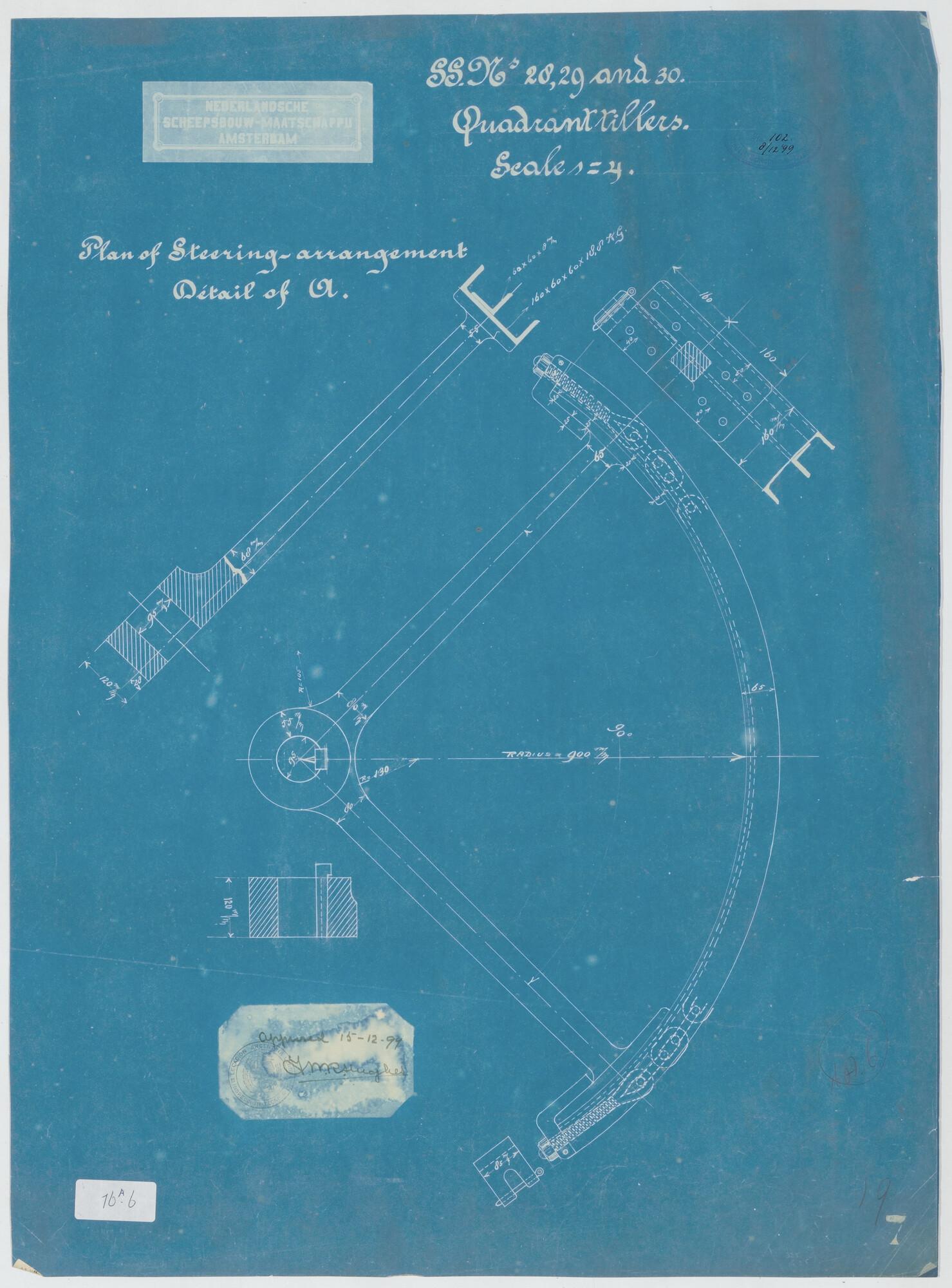 Roerkwadrant van de hoppers "Pantikopea", "Tanais", "Tanagoria", "Olivia", "Dioskuria", "Martin Garcia I", "Martin Garcia II" en "Martin Garcia III" voor Werf Conrad.