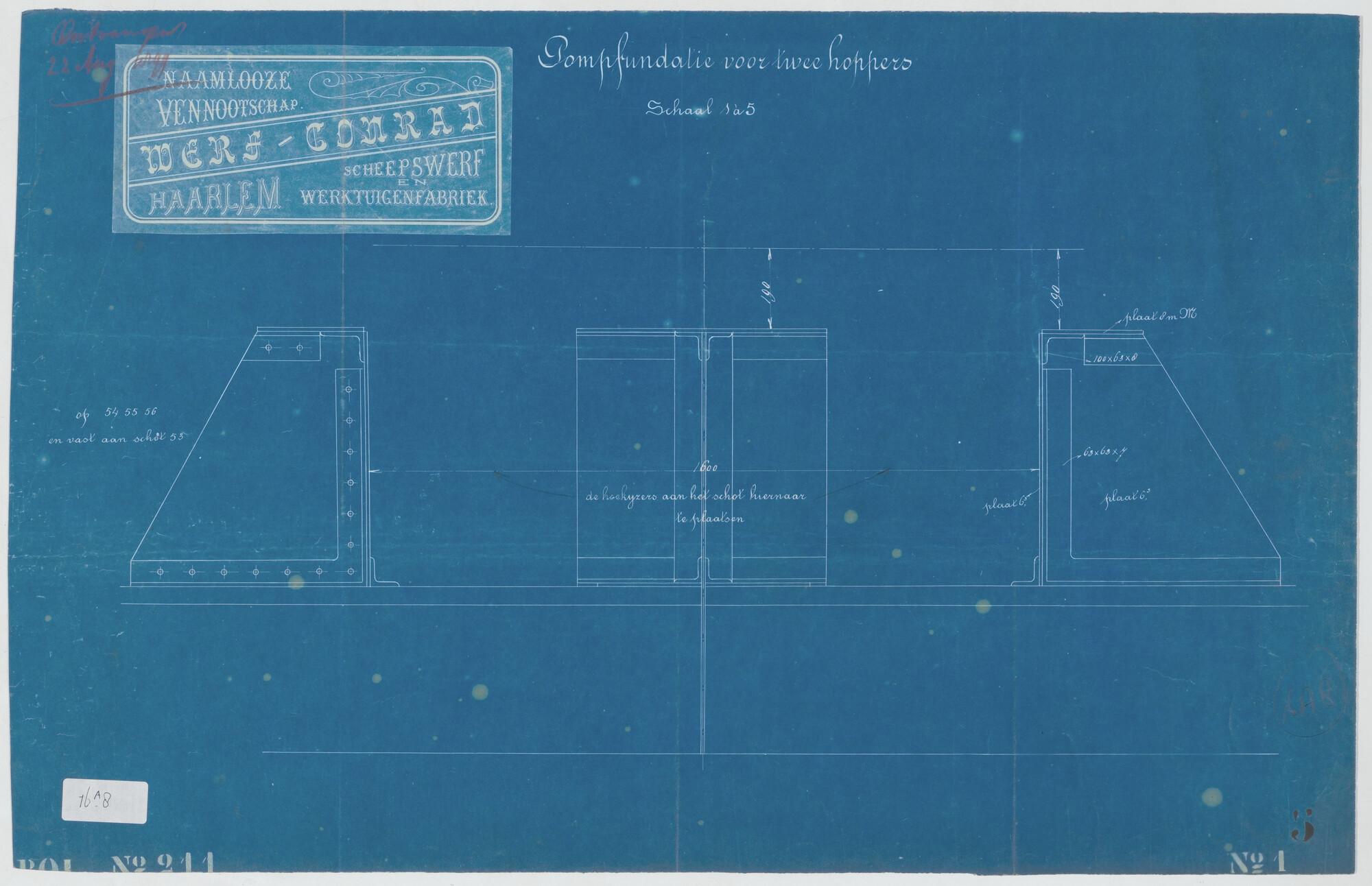 Pompfundatie voor twee hoppers van de hoppers "Pantikopea", "Tanais", "Tanagoria", "Olivia", "Dioskuria", "Martin Garcia I", "Martin Garcia II" en "Martin Garcia III" voor Werf Conrad.