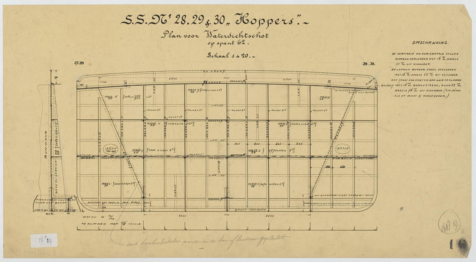 Plan voor waterdicht schot op spant 62 van een hopperzuiger