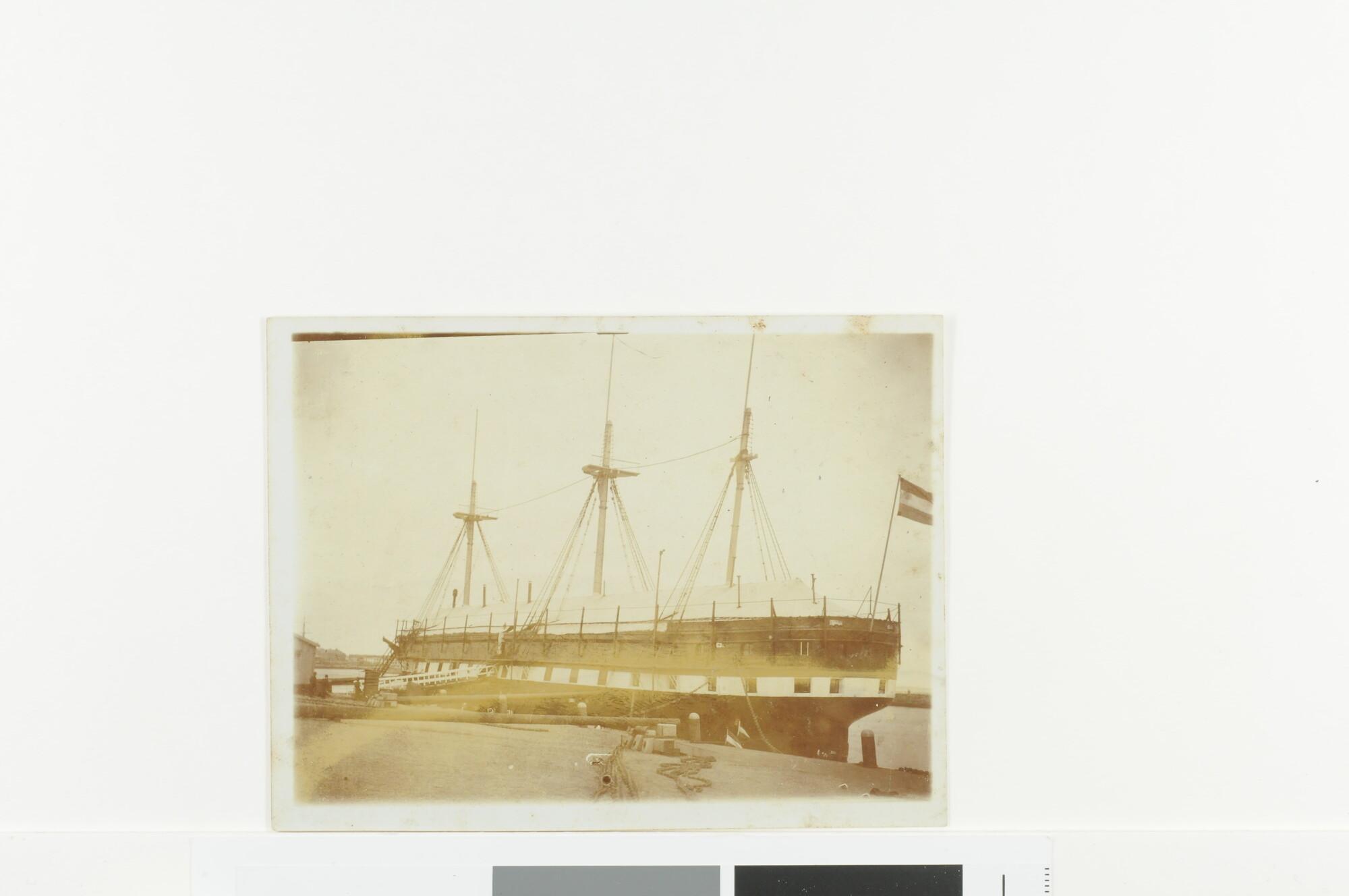 Het wachtschip Hr.Ms. "Neptunus" afgemeerd aan het Nieuwe Diep te Den Helder, omstreeks 1895.