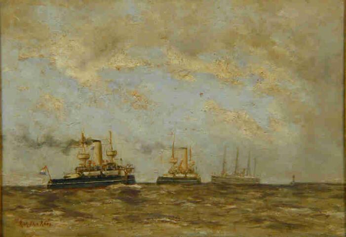 Het pantserschip Hr.Ms. Evertsen en een Nederlands pantserschip