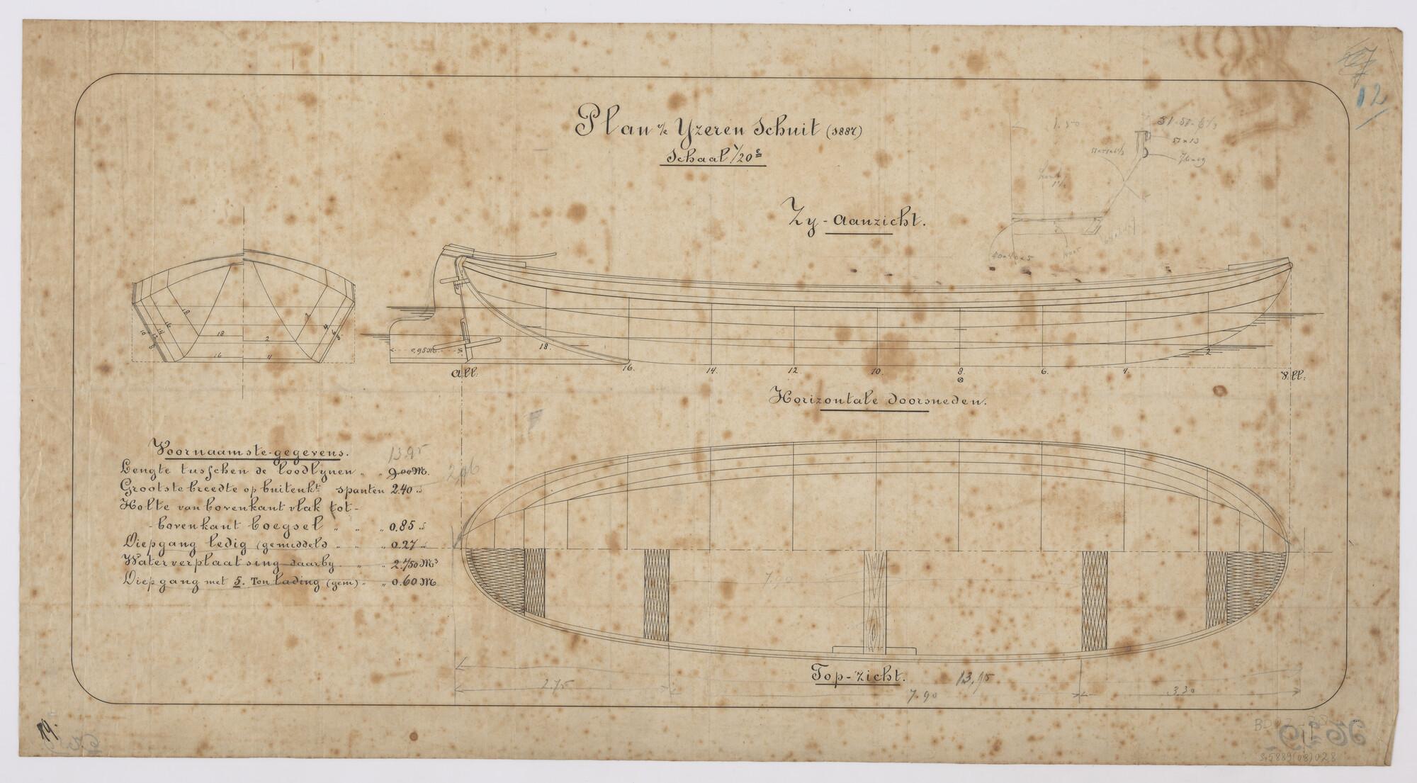 Algemeen plan ijzeren schuit (schaal 1:20).
