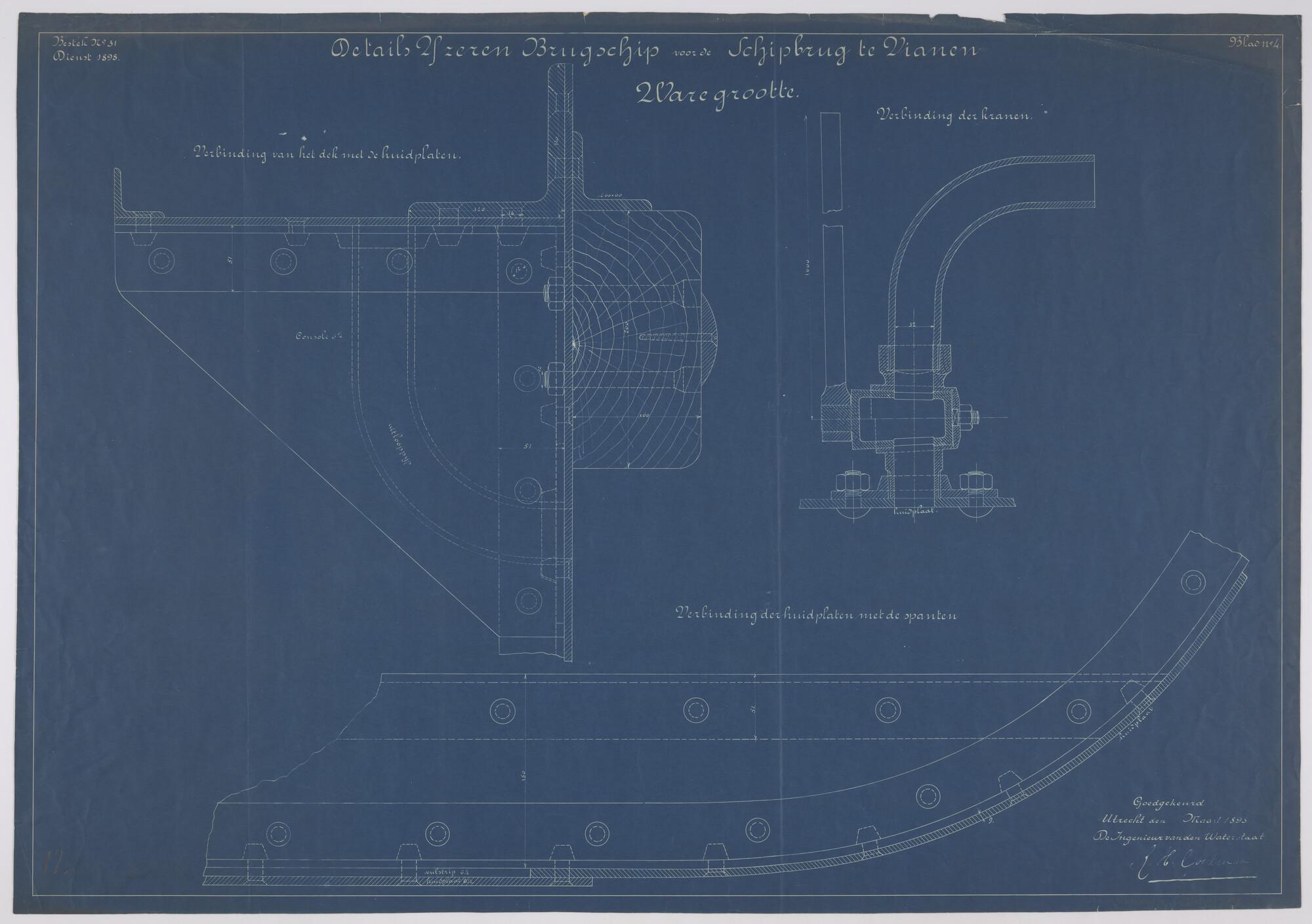 Details ijzeren brugschip voor de schipbrug te Vianen (schaal 1:1).