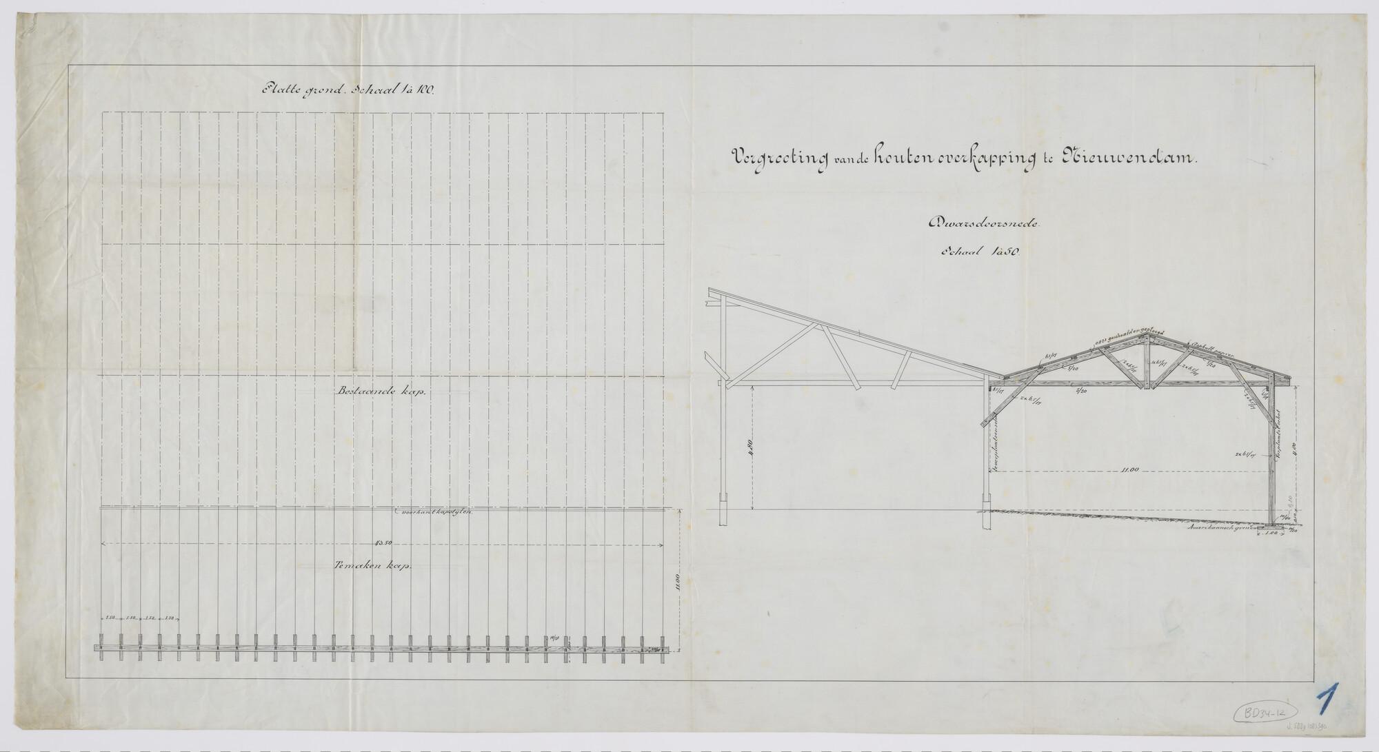 Constructie houten kappen Scheepsbouwwerf Het Jacht (schaal 1:50).