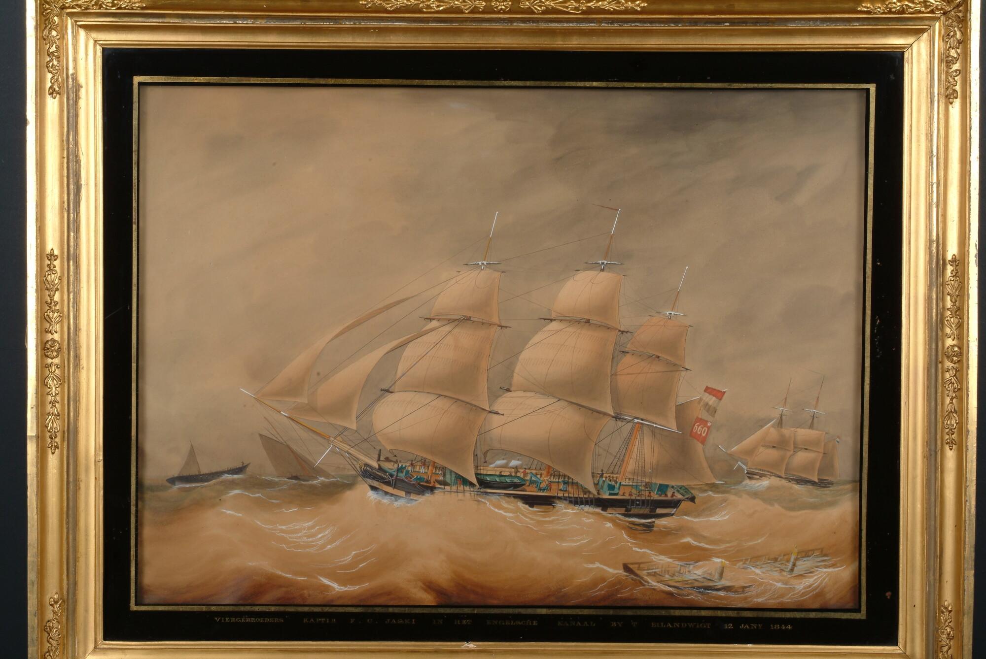 Het fregatschip Vier Gebroeders van kapitein F.C. Jaski ter hoogte van het eiland Wight.